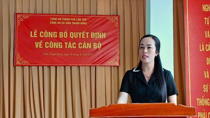 Ngày 19/01/2026, Công an xã Vĩnh Thuận Đông long trọng tổ chức Lễ công bố Quyết định của Giám đốc Công an thành phố về việc điều động cán bộ tăng cường về Công an cấp xã.