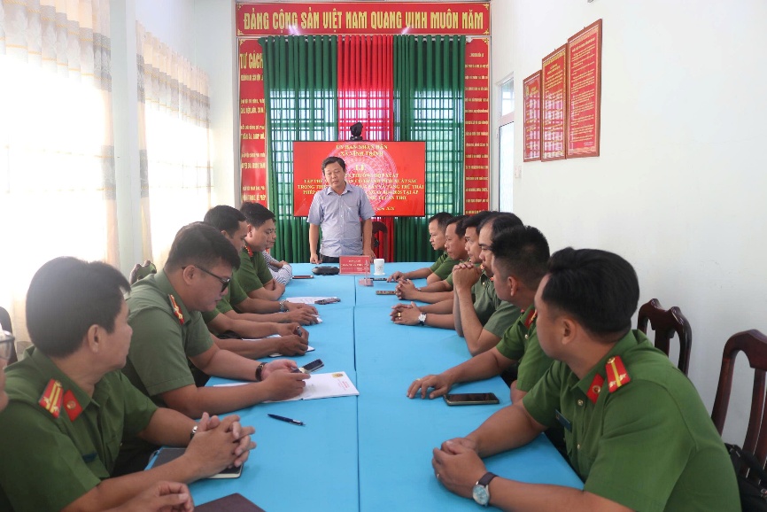 Chỉ huy Công an xã Vĩnh Trinh báo cáo sơ bộ về vụ án đã được triệt phá
