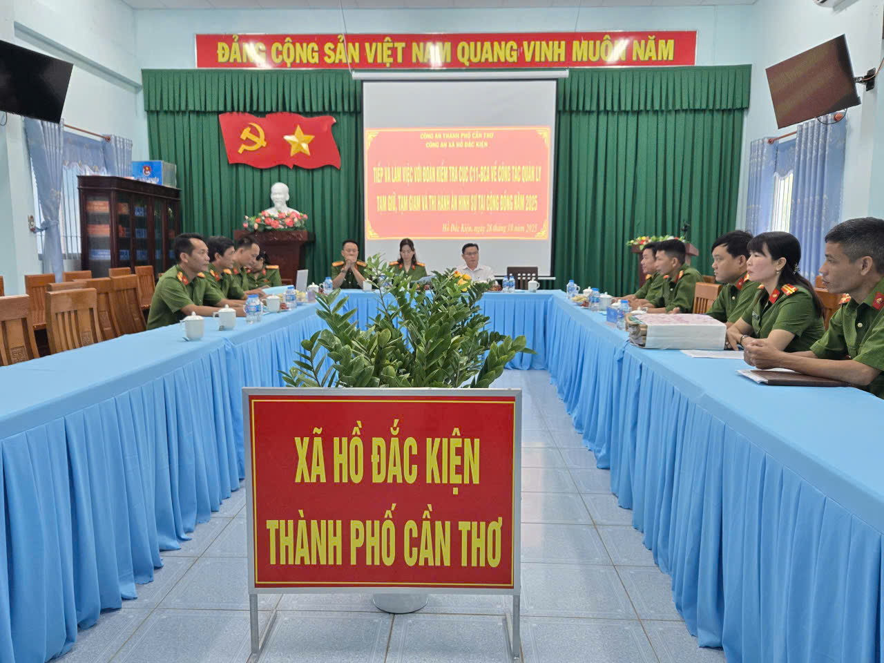Thành phần Công an thành phố tiếp, làm việc với Đoàn kiểm tra có đồng chí Đại tá Trần Hoàng Độ - Phó Giám đốc, Thủ trưởng Cơ quan thi hành án hình sự, Thủ trưởng Cơ quan quản lý tạm giữ, tạm giam Công an thành phố Cần Thơ, cùng đại diện lãnh đạo các phòng nghiệp vụ, Trại Tạm giam, Phân trại Tạm giam và Công an xã, phường thuộc Công an thành phố. Tại buổi công bố Quyết định về việc thành lập Đoàn kiểm tra, đồng chí Đại tá Bùi Đắc Huyền - Phó Cục trưởng Cục Cảnh sát tạm giữ, tạm giam và thi hành án hình sự tại cộng đồng, Bộ Công an, Trưởng đoàn kiểm tra nhấn mạnh “Đợt kiểm tra nhằm đánh giá toàn diện việc triển khai thực hiện các quy định của pháp luật, các chỉ đạo của Bộ Công an về công tác tạm giữ, tạm giam, thi hành án hình sự tại cộng đồng năm 2025, đây không chỉ nhằm đánh giá, mà còn là dịp để hướng dẫn, tháo gỡ những khó khăn cho Công an đơn vị địa phương góp phần nâng cao chất lượng, hiệu quả trong công tác quản lý tạm giữ, tạm giam, thi hành án hình sự tại cộng đồng”.