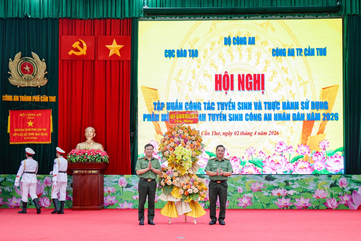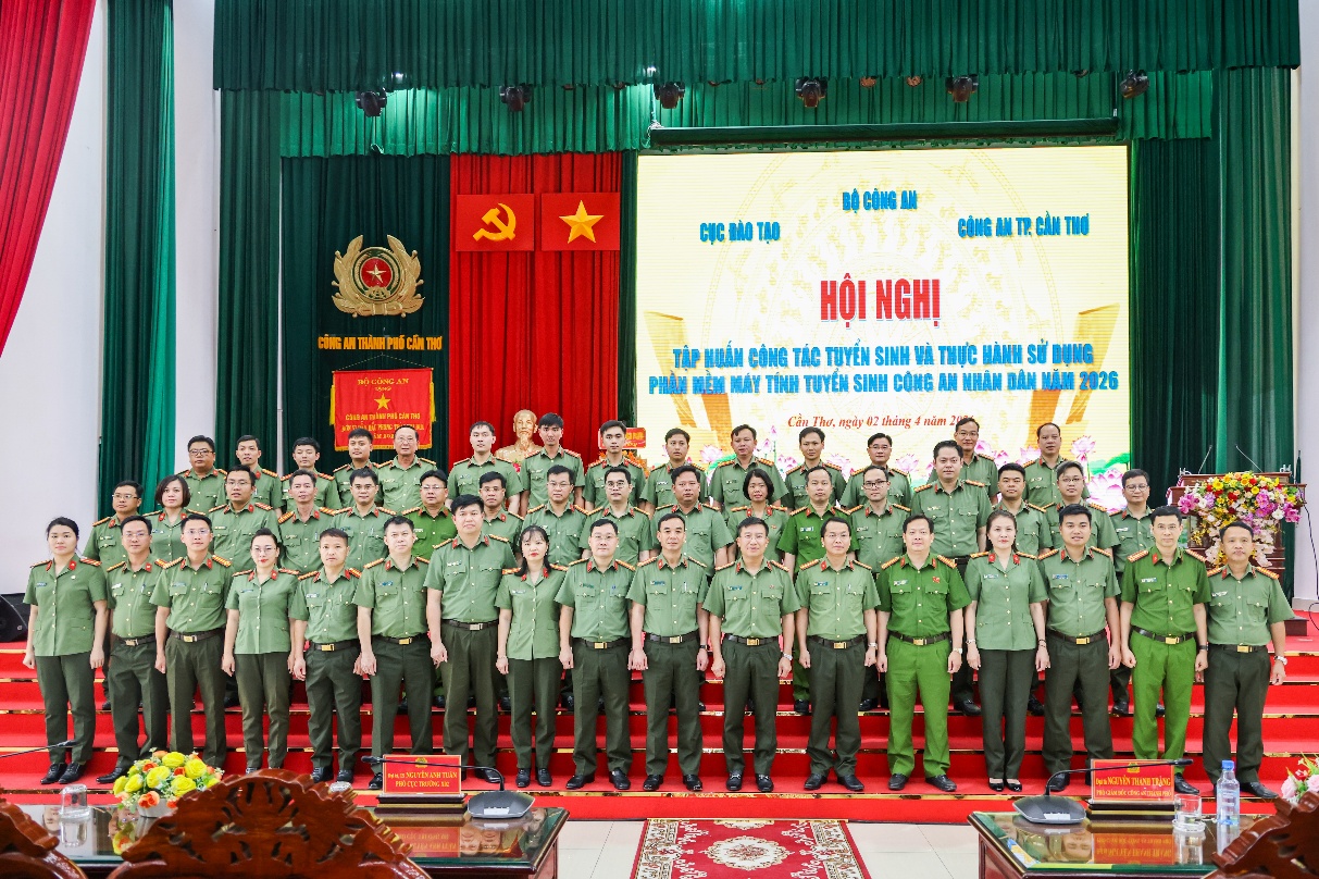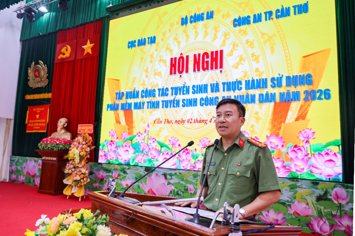 Chiều 02/4, tại thành phố Cần Thơ, Cục Đào tạo, Bộ Công an phối hợp Công an thành phố Cần Thơ tổ chức Hội nghị tập huấn công tác tuyển sinh và thực hành sử dụng phần mềm máy tính tuyển sinh Công an nhân dân năm 2026. Dự và chủ trì Hội nghị có Đại tá, Tiến sĩ Nguyễn Anh Tuấn, Phó Cục trưởng Cục Đào tạo, Bộ Công an; cùng dự có Đại tá Nguyễn Thanh Tràng, Thành ủy viên, Phó Bí thư Đảng ủy, Phó Giám đốc Công an thành phố Cần Thơ; đại diện lãnh đạo các Cục nghiệp vụ Bộ Công an và 150 đồng chí là lãnh đạo, cán bộ trực tiếp thực hiện công tác tuyển sinh tại các học viện, trường Công an nhân dân và Công an các đơn vị, địa phương.