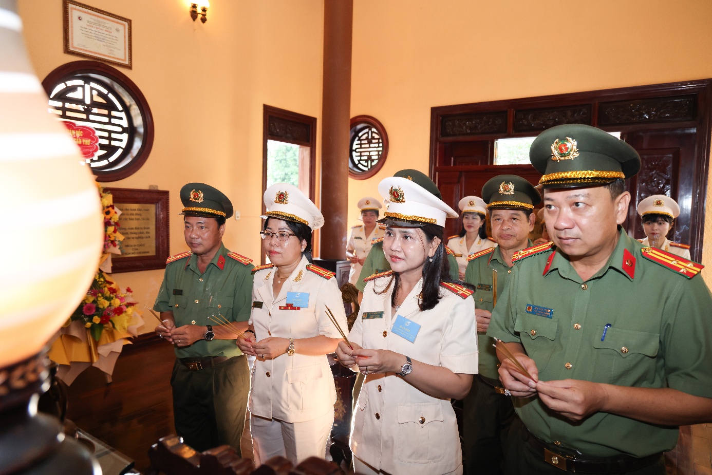 Trước khi tiến hành Đại hội, cấp ủy, lãnh đạo Phòng Công tác chính trị cùng hội viên phụ nữ của đơn vị dâng hương Nhà Tưởng niệm Chủ tịch Hồ Chí Minh trong khuôn viên Công an thành phố