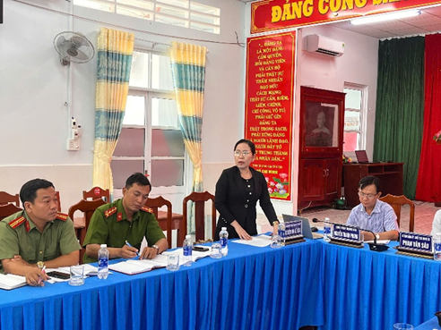 Đồng chí Thượng tá Nguyễn Văn Thạnh, Bí thư Đảng ủy Công an, Trưởng Công an xã trao khen thưởng cho 01 tập thể, 05 cá nhân Công an xã