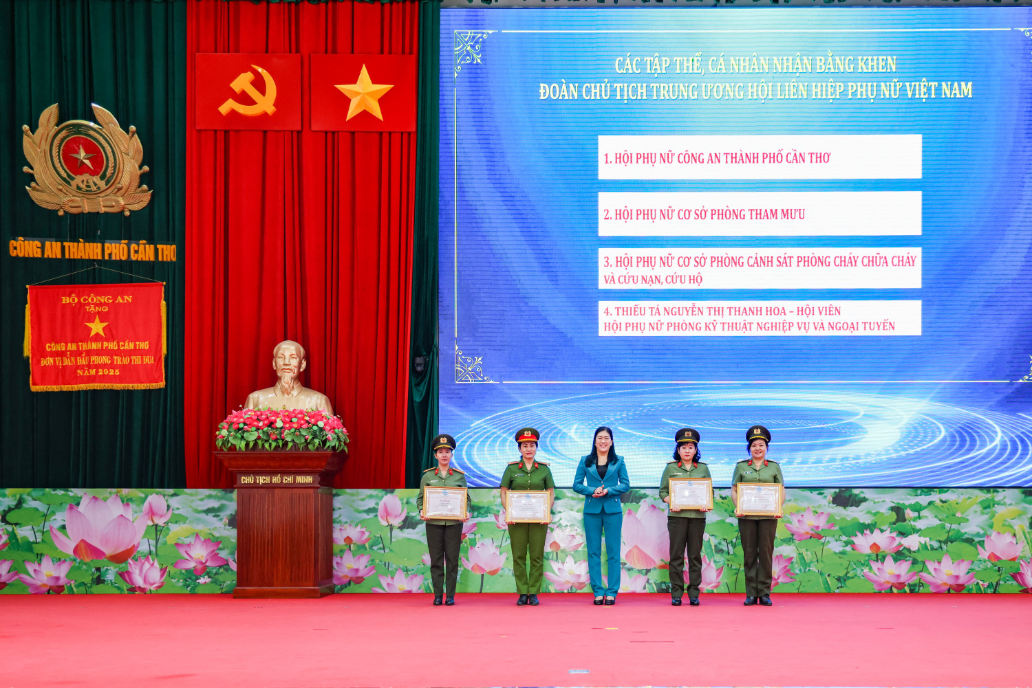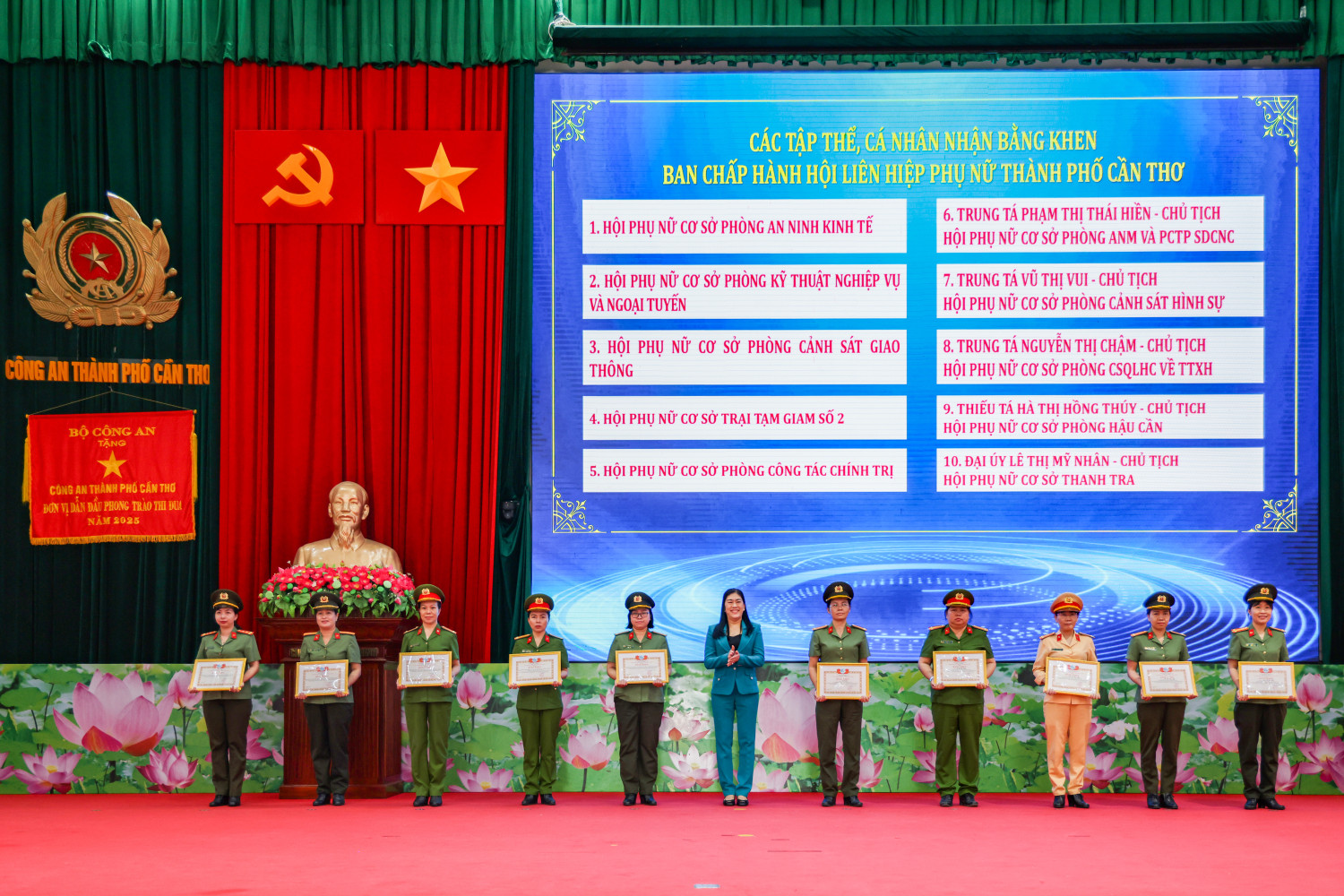 Một dấu mốc quan trọng trong năm 2025 là việc tổ chức thành công Đại hội Đoàn Thanh niên và Đại hội Hội Phụ nữ Công an thành phố Cần Thơ lần thứ I, nhiệm kỳ 2025 - 2030, đồng thời chỉ đạo, hướng dẫn tổ chức thành công đại hội các cơ sở trực thuộc. Đại hội không chỉ kiện toàn tổ chức, mà thực sự trở thành đợt sinh hoạt chính trị sâu rộng, thống nhất nhận thức, khơi dậy khát vọng cống hiến, tạo nền tảng vững chắc cho phong trào thanh niên, phụ nữ trong toàn lực lượng bước vào giai đoạn phát triển mới.