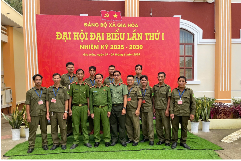 Lực lượng tham gia bảo vệ an ninh, trật tự ở cơ sở xã Gia Hòa tham gia công tác bảo đảm an ninh, trật tự tại Đại hội đại biểu Đảng bộ xã Gia Hòa, nhiệm kỳ 2025 – 2030