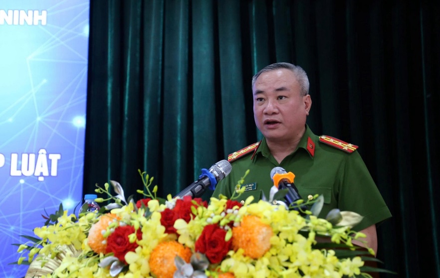 Đại tá Trịnh Khắc Cường, Phó Chánh Văn phòng Bộ Công an phát biểu tại Hội thảo.