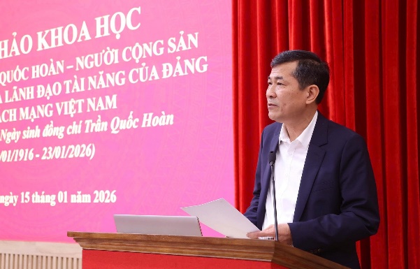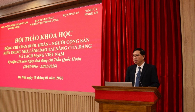 Chiều 15/01/2026, tại Hà Nội, Học viện Chính trị Quốc gia Hồ Chí Minh, Ban Tuyên giáo và Dân vận Trung ương, Bộ Công an và Tỉnh ủy Nghệ An tổ chức Hội thảo khoa học “Đồng chí Trần Quốc Hoàn - Người cộng sản kiên trung, nhà lãnh đạo tài năng của Đảng và cách mạng Việt Nam”.