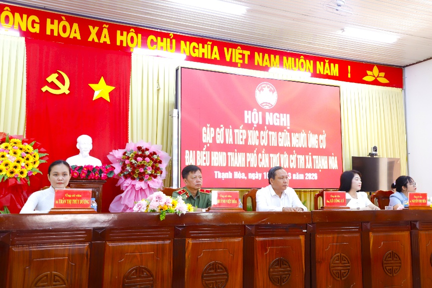 Tiếp tục với hoạt động tiếp xúc cử tri, vận động bầu cử của người ứng cử đại biểu Quốc hội, HĐND các cấp, ngày 10/3/2026, Thiếu tướng Huỳnh Việt Hòa , Ủy viên Ban Thường vụ Thành ủy, Bí thư Đảng ủy, Giám đốc Công an Thành phố Cần Thơ và những người ứng cử đại biểu HĐND Thành phố, nhiệm kỳ 2026 – 2031 thuộc đơn vị bầu cử số 16 đã có buổi gặp gỡ, tiếp xúc với hơn 150 cử tri xã Thạnh Hòa.