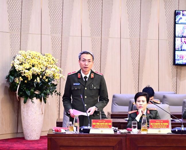 Thiếu tướng Nguyễn Quốc Toản, Chánh Văn phòng Bộ Công an báo cáo kết quả công tác trọng tâm bảo đảm ANTT cuộc bầu cử