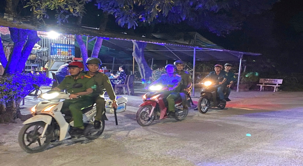 Công an xã phố hợp với Ban Chỉ huy Quân sự xã, lực lượng tham gia bảo vệ an ninh, trật tự ở cơ sở tổ chức tuần tra bảo đảm an ninh, trật tự trên địa bàn