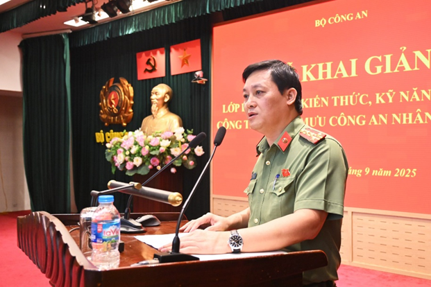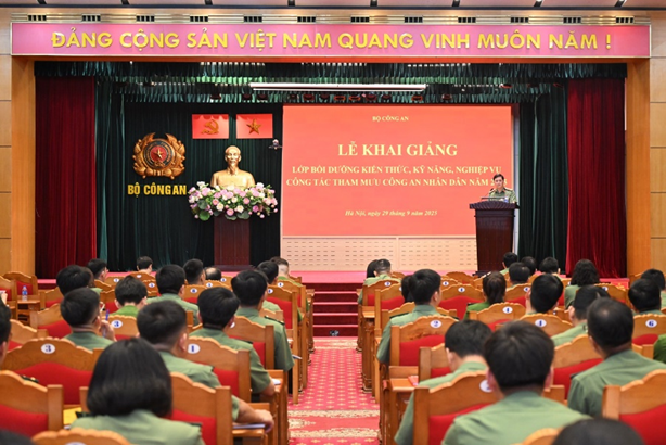 Sáng ngày 29/9/2025, tại Hà Nội, Bộ Công an tổ chức Lễ khai giảng lớp bồi dưỡng kiến thức, kỹ năng, nghiệp vụ công tác tham mưu Công an nhân dân (CAND) năm 2025.