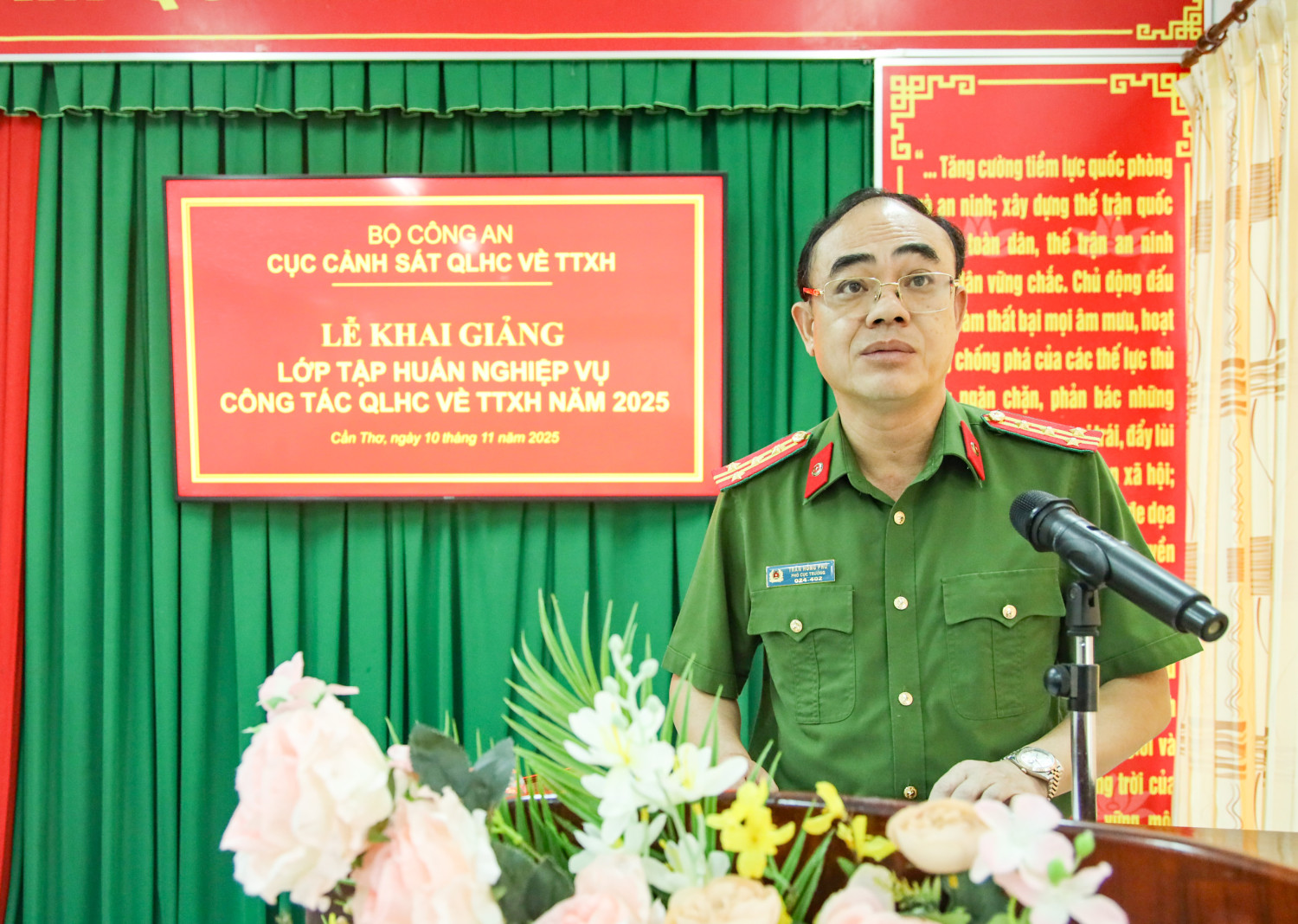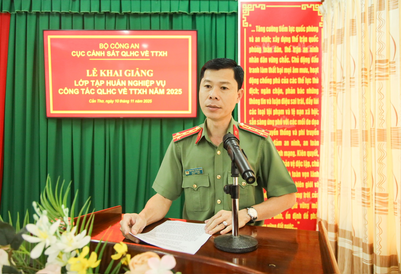 Sáng ngày 10/11/2025, tại Trung tâm Bồi dưỡng và Huấn luyện nghiệp vụ, Công an thành phố Cần Thơ (địa chỉ: số 250 đường Nguyễn Văn Cừ, phường An Bình, thành phố Cần Thơ), Cục Cảnh sát quản lý hành chính về trật tự xã hội, Bộ Công an phối hợp với Công an thành phố Cần Thơ tổ chức khai giảng lớp tập huấn nghiệp vụ công tác quản lý hành chính về trật tự xã hội cho chỉ huy, cán bộ Công an các xã, phường thuộc Công an thành phố Cần Thơ năm 2025.