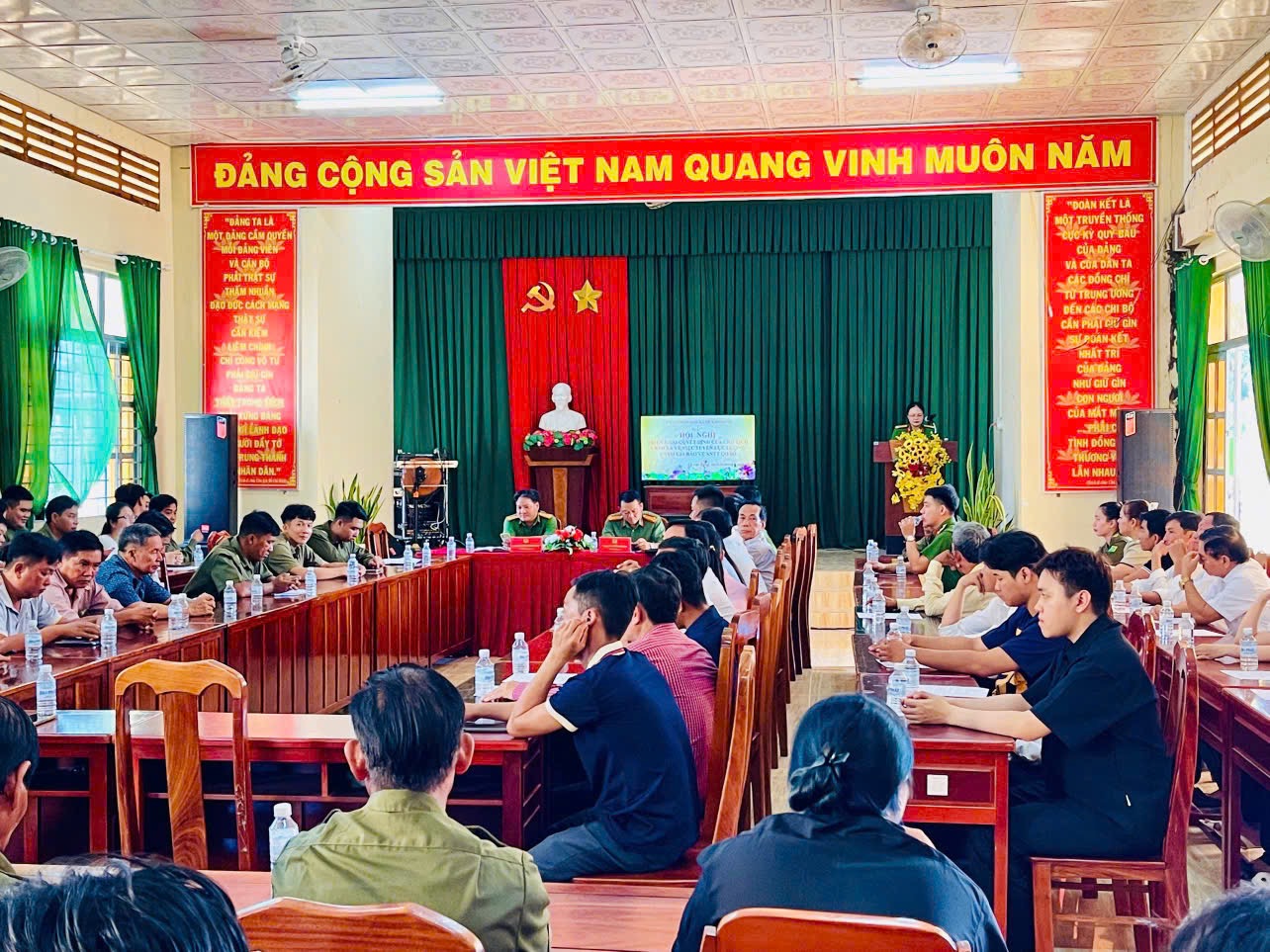 Trung tá Nguyễn Hoài Nhi, Trưởng Công an xã phát biểu kết luận hội nghị