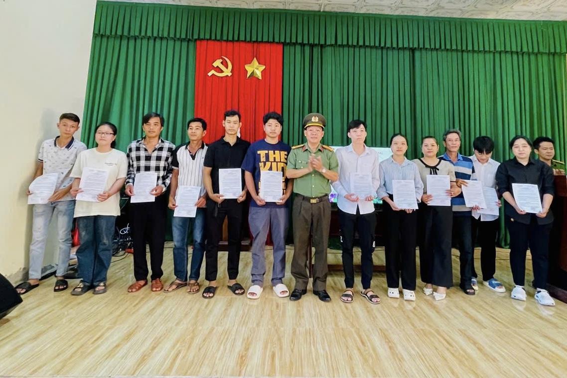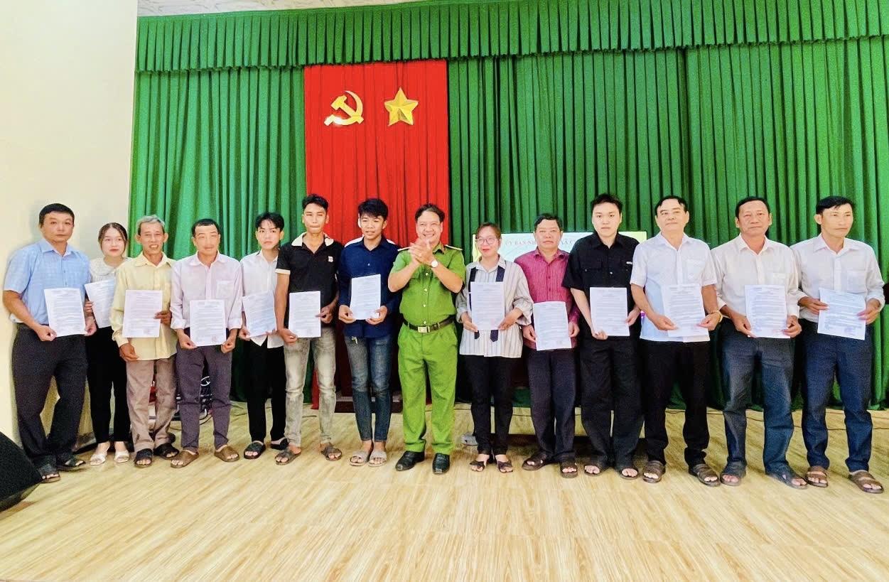 Chỉ huy Công an xã trao Quyết định cho các cá nhân được tuyển chọn vào lực lượng tham gia bảo vệ an ninh, trật tự ở cơ sở