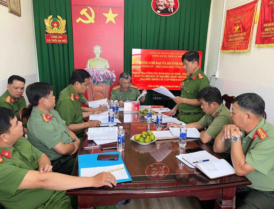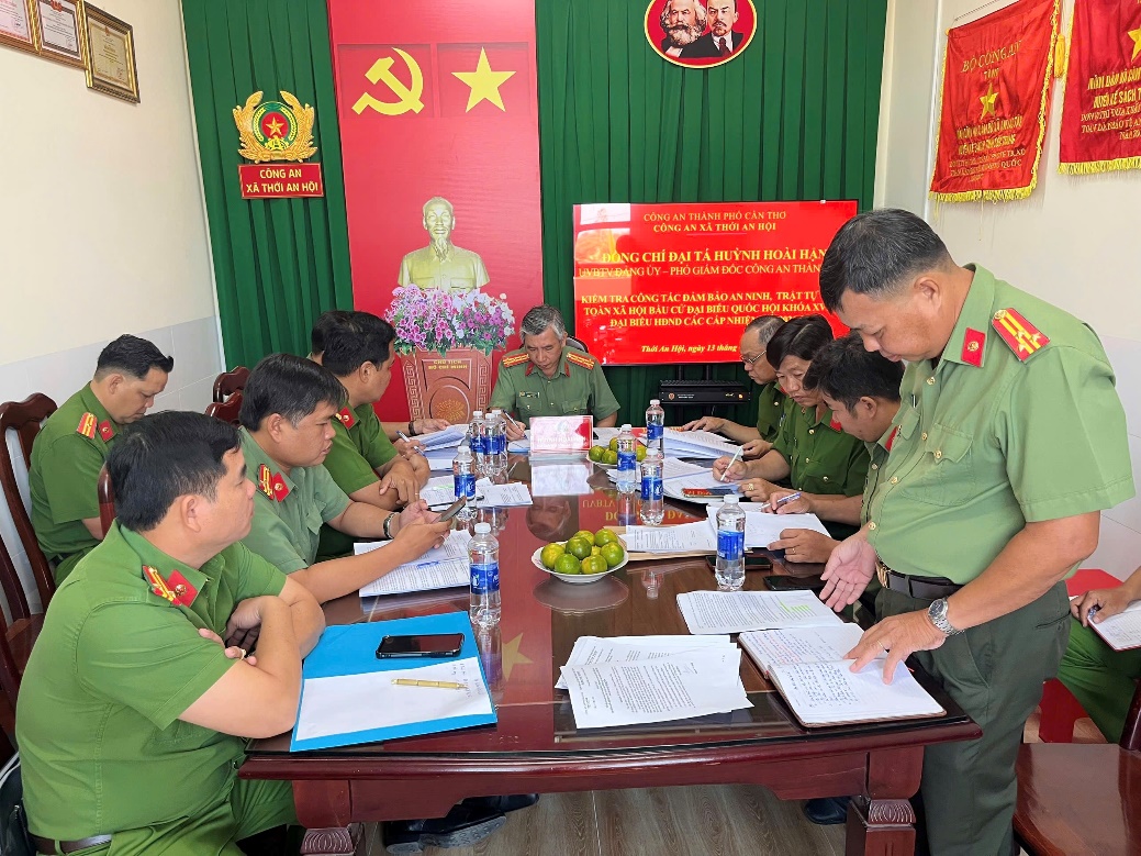Phát biểu tại buổi kiểm tra, Đại tá Huỳnh Hoài Hận ghi nhận và biểu dương những kết quả mà Công an xã Phong Nẫm và xã Thới An Hội đã triển khai trong thời gian qua. Đồng chí nhấn mạnh, các đơn vị cần tiếp tục nêu cao tinh thần trách nhiệm, chủ động và quyết liệt hơn nữa trong việc triển khai các phương án bảo đảm ANTT. Trong đó, tập trung tăng cường công tác nắm chắc tình hình địa bàn, quản lý chặt chẽ các loại đối tượng, đẩy mạnh tuần tra kiểm soát, kịp thời phát hiện và xử lý các vụ việc phát sinh, không để bị động, bất ngờ, góp phần giữ vững ổn định tình hình ANTT trước, trong và sau bầu cử. Bên cạnh đó, cần triển khai đồng bộ các phương án bảo đảm an ninh, an toàn tại các điểm bầu cử, tạo điều kiện thuận lợi để người dân tham gia bỏ phiếu trong không khí an toàn, dân chủ và đúng quy định. Đặc biệt, chú trọng công tác bảo vệ thùng phiếu tại các điểm bầu cử và thùng phiếu lưu động phục vụ cử tri không thể trực tiếp đến điểm bầu cử, bảo đảm mọi công dân đều có thể thực hiện quyền bầu cử của mình. Đồng thời, thực hiện tốt công tác bảo vệ quá trình kiểm phiếu, vận chuyển thùng phiếu về Ủy ban bầu cử sau khi kết thúc bỏ phiếu, bảo đảm an toàn, đúng quy định và không để lộ, lọt thông tin kết quả bầu cử. Ngoài ra, đồng chí Phó Giám đốc Công an thành phố cũng chỉ đạo Công an xã Phong Nẫm và xã Thới An Hội phối hợp với các ngành, đoàn thể địa phương tăng cường công tác tuyên truyền về cuộc bầu cử trên địa bàn; thường xuyên kiểm tra hệ thống băng rôn, pano, áp phích, cờ phướn, cờ Tổ quốc và các bảng niêm yết danh sách đại biểu ứng cử tại các tuyến đường, khu vực công cộng và các điểm bầu cử; kịp thời khắc phục, thay thế khi có hư hỏng nhằm bảo đảm công tác tuyên truyền được thực hiện hiệu quả, góp phần tạo không khí phấn khởi, trang trọng hướng tới Ngày hội lớn của toàn dân. Hiện nay, địa phương đang khẩn trương hoàn tất các công đoạn cuối cùng để chuẩn bị cho Ngày hội của non sông. Với sự chủ động triển khai các phương án bảo đảm ANTT cùng sự phối hợp chặt chẽ của các lực lượng chức năng và chính quyền địa phương, công tác bảo vệ bầu cử trên địa bàn xã Phong Nẫm và xã Thới An Hội, góp phần bảo đảm cuộc bầu cử đại biểu Quốc hội khóa XVI và đại biểu Hội đồng nhân dân các cấp nhiệm kỳ 2026–2031 diễn ra an toàn, dân chủ, thành công tốt đẹp./.