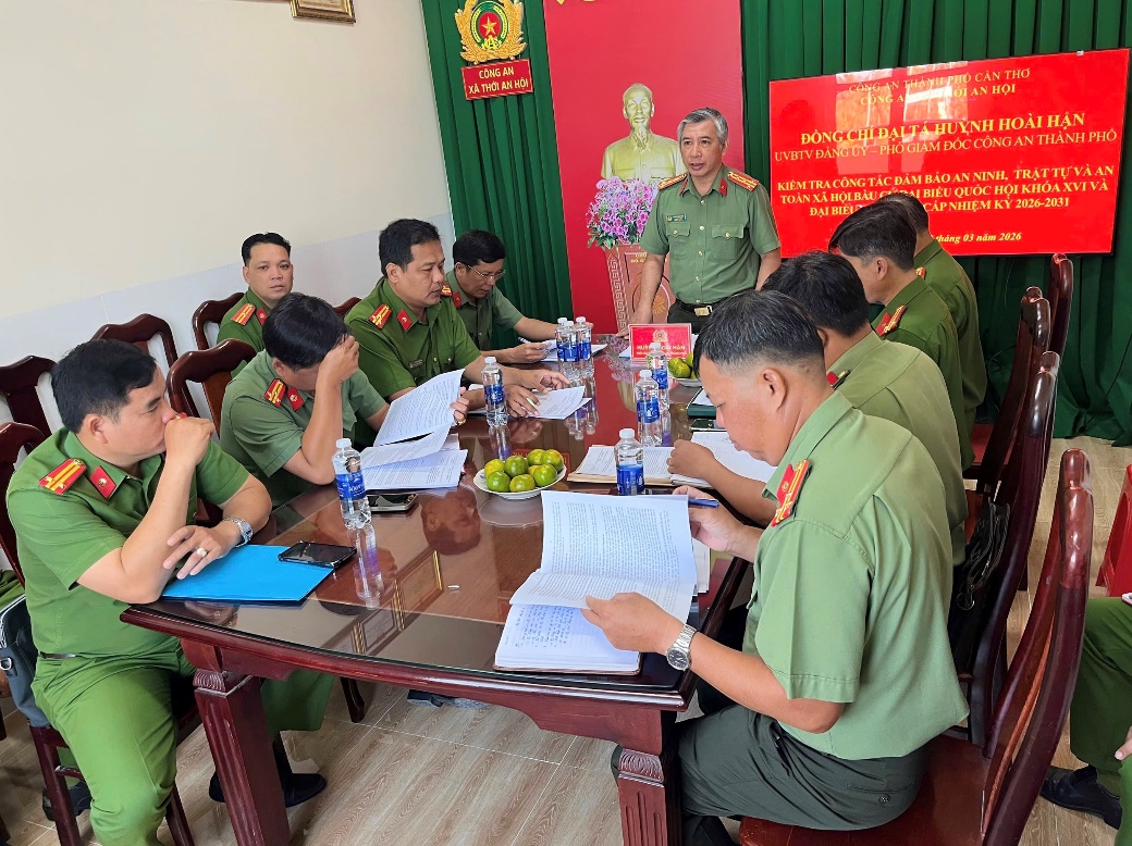 Ngày 13/03/2026, Đại tá Huỳnh Hoài Hận, Phó Giám đốc Công an thành phố Cần Thơ cùng đoàn công tác đã đến kiểm tra công tác bảo đảm an ninh, trật tự (ANTT) phục vụ bầu cử đại biểu Quốc hội khóa XVI và đại biểu Hội đồng nhân dân các cấp nhiệm kỳ 2026 – 2031 tại Công an xã Phong Nẫm và xã Thới An Hội, thành phố Cần Thơ.