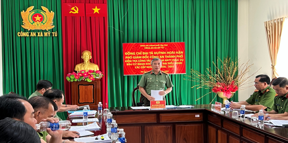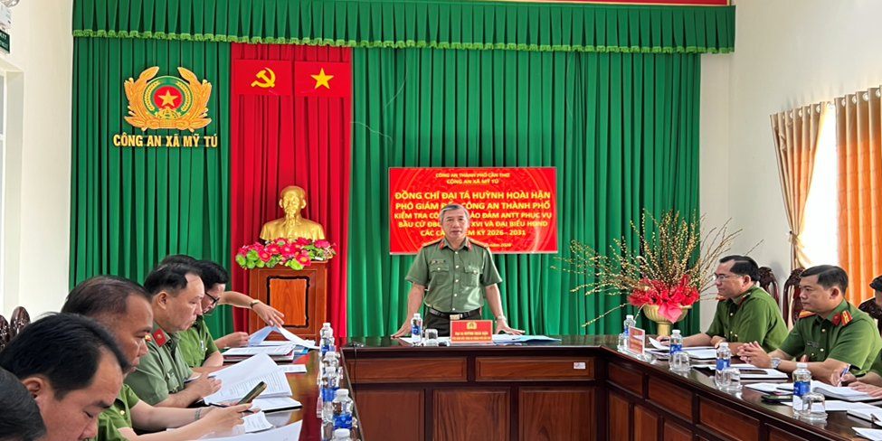 LÃNH ĐẠO CÔNG AN THÀNH PHỐ CẦN THƠ KIỂM TRA CÔNG TÁC BẢO ĐẢM AN NINH, TRẬT TỰ PHỤC VỤ BẦU CỬ ĐẠI BIỂU QUỐC HỘI VÀ ĐẠI BIỂU HỘI ĐỒNG NHÂN DÂN CÁC CẤP NHIỆM KỲ 2026 - 2031 TẠI CÔNG AN XÃ MỸ TÚ