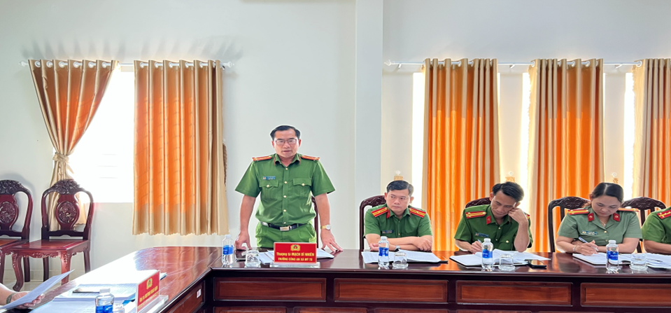 Ảnh: Đồng chí Thượng tá Mạch Dĩ Nhiên, Trưởng Công an xã tiếp thu ý kiến chỉ đạo