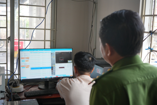 Đại tá Lê Đức Bảy kiểm tra hệ thống lưu trữ, xử lý hình ảnh từ camera giám sát