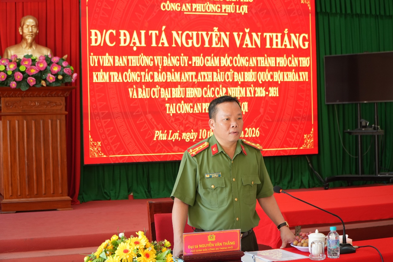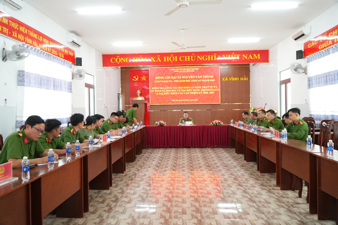 Ngày 10/3, Đoàn công tác của Công an TP Cần Thơ do Đại tá Nguyễn Văn Thắng, Phó Giám đốc Công an thành phố làm Trưởng đoàn đã đến kiểm tra công tác chuẩn bị bầu cử tại Công an phường Vĩnh Phước, phường Phú Lợi, xã Hòa Tú, xã Vĩnh Hải và xã Mỹ Hương.