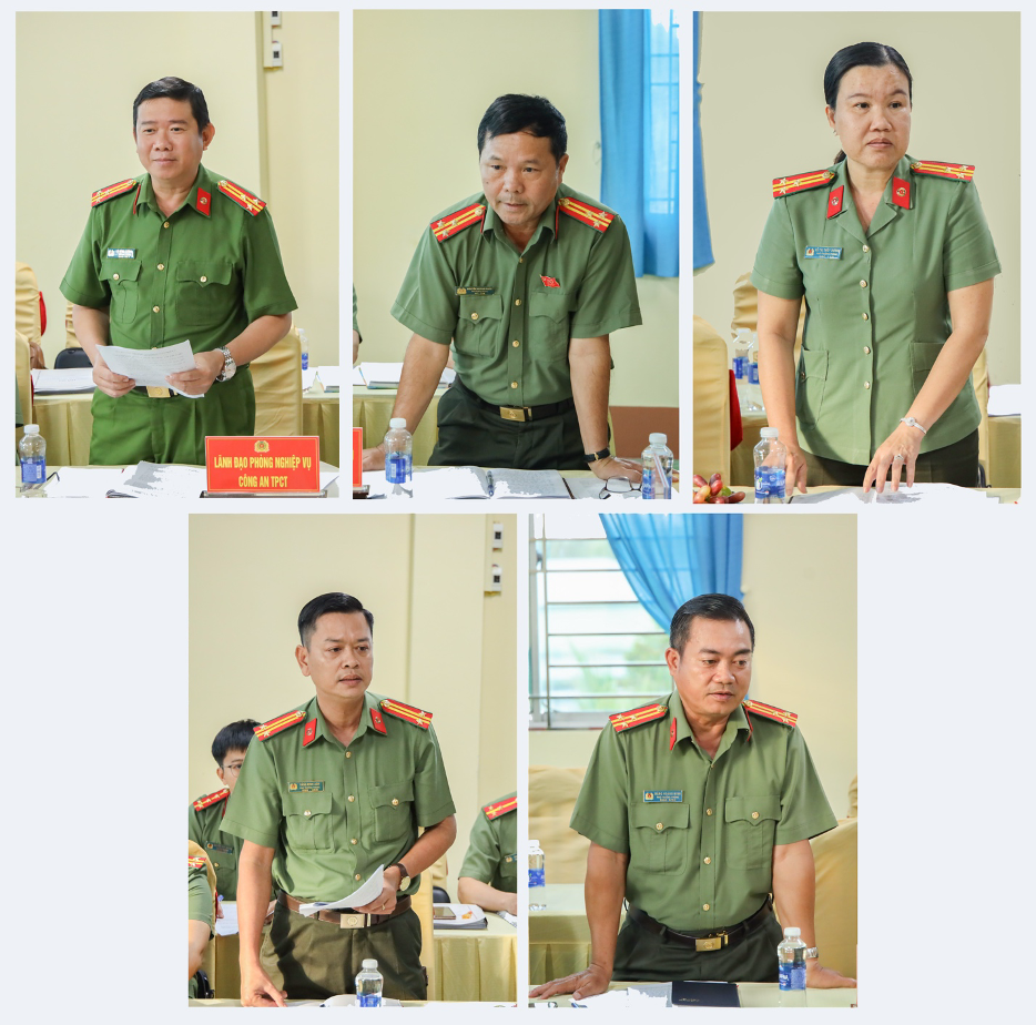 Đại diện lãnh đạo các Phòng nghiệp vụ Công an thành phố phát biểu tại buổi làm việc.