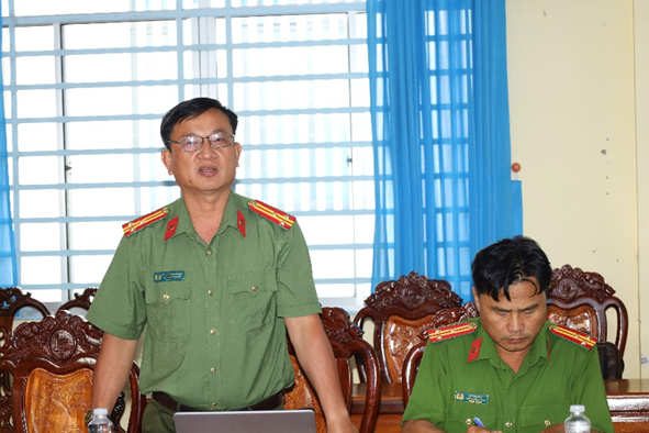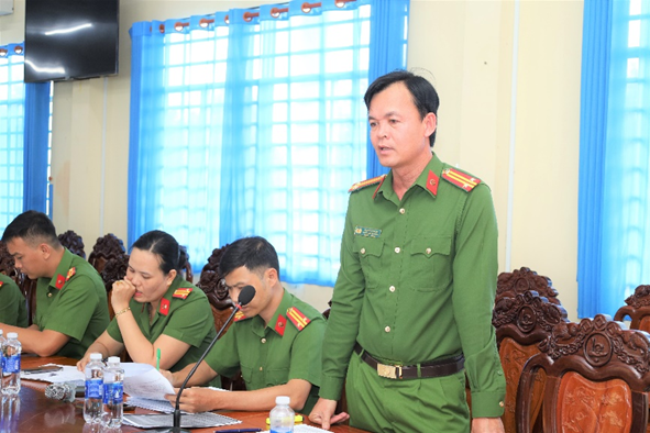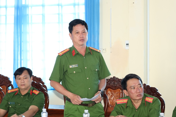 Đại diện Công an các đơn vị báo cáo tại buổi làm việc