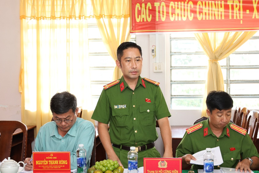 Đồng chí Trưởng Công an xã Phương Bình báo cáo tại buổi làm việc