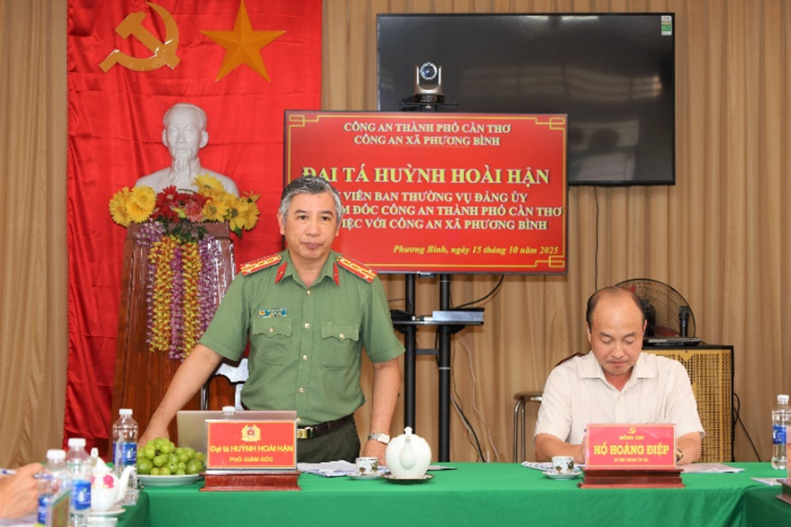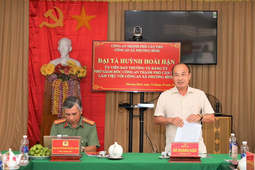 Ngày 15/10, Đại tá Huỳnh Hoài Hận, Phó Giám đốc Công an thành phố Cần Thơ làm việc với Công an xã Phương Bình, dự buổi làm việc có Thường trực Đảng ủy, Ủy ban nhân dân xã, các đơn vị chức năng thuộc Công an thành phố, cấp ủy, Ban chỉ huy và cán bộ chủ chốt của Công an xã.