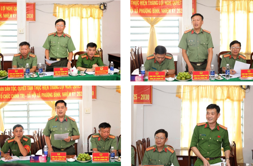 Kết luận buổi làm việc, Đại tá Huỳnh Hoài Hận, Phó Giám đốc Công an thành phố đề nghị Công an xã Phương Bình tiếp tục triển khai các mặt công tác nhằm giữ vững tình hình an ninh chính trị, trật tự an toàn xã hội; linh hoạt sử dụng lực lượng tổ chức tuần tra, kiểm soát khép kín địa bàn và phối hợp có hiệu quả với lực lượng bảo vệ an ninh, trật tự ở cơ sở trong các mặt công tác. Công an xã cần phát huy tốt vai trò thường trực các Ban Chỉ đạo của địa phương trong đấu tranh phòng, chống tội phạm, tệ nạn xã hội và phong trào toàn dân bảo vệ an ninh Tổ quốc. Tham mưu cho Đảng ủy, Ủy ban nhân dân xã triển khai hiệu quả kế hoạch xây dựng xã không ma túy năm 2025 và những năm tiếp theo.