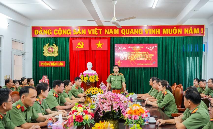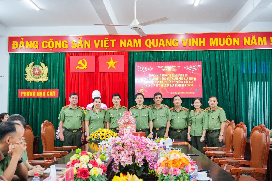 Thăm và chúc Tết Phòng Hậu cần, Trung tá Đinh Tùng An, Phó Giám đốc Công an thành phố ghi nhận, đánh giá cao những kết quả công tác nổi bật của đơn vị đạt được trong năm qua. Theo đó, Phòng Hậu cần đã chủ động tham mưu Đảng ủy, Ban Giám đốc Công an thành phố triển khai hiệu quả các mặt công tác tài chính, hậu cần, kỹ thuật, đáp ứng kịp thời yêu cầu bảo đảm cho hoạt động chiến đấu, xây dựng lực lượng của Công an các đơn vị, địa phương, nhất là trong thời điểm sau sáp nhập. Công tác tham mưu hậu cần được thực hiện bài bản, sát thực tiễn; các nguồn kinh phí do Bộ Công an và UBND thành phố cấp được quản lý, sử dụng đúng mục đích, hiệu quả, phục vụ tốt các nhiệm vụ trọng tâm của Công an thành phố. Với sự nỗ lực, đồng lòng, tập thể cán bộ, chiến sĩ Phòng Hậu cần Công an thành phố đã hoàn thành đạt và vượt nhiều chỉ tiêu được giao. Đơn vị cũng vinh dự nhận danh hiệu “Đơn vị Quyết thắng năm 2025”.