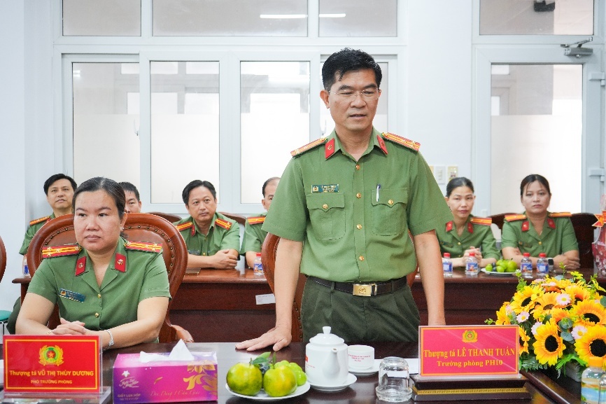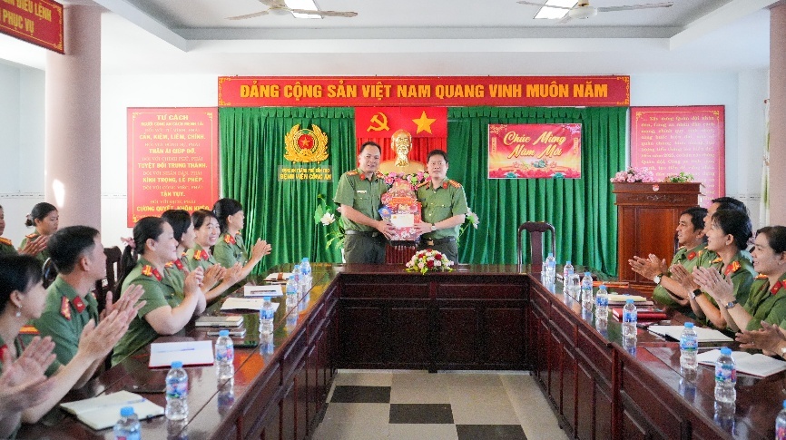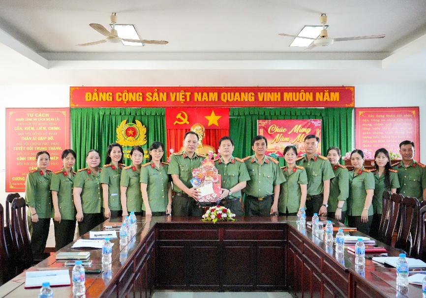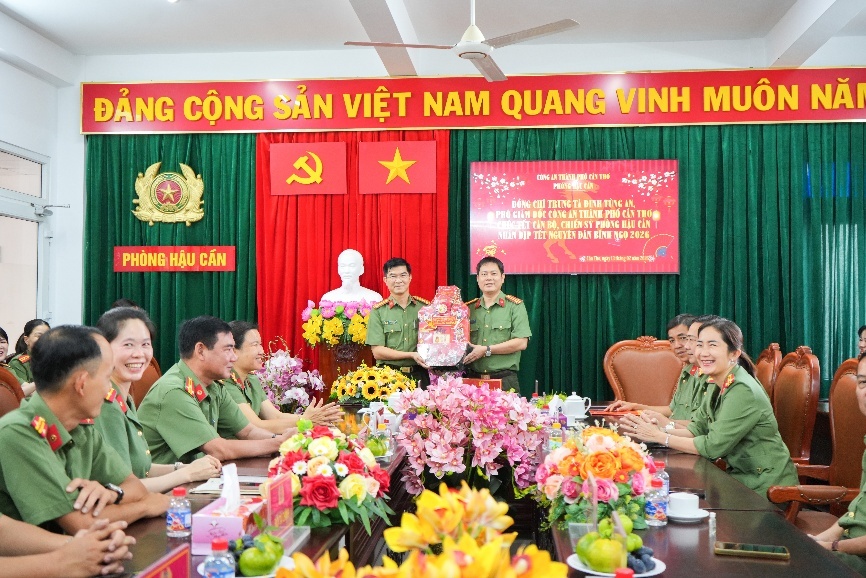 Trung tá Đinh Tùng An, Phó Giám đốc Công an thành phố thăm và chúc Tết Phòng Hậu cần