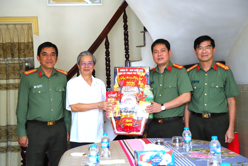 Tại các nơi đến, Trung tá Đinh Tùng An, Phó Giám đốc đã ân cần thăm hỏi sức khỏe, thông báo thành tích nổi bật của địa phương và của lực lượng Công an Thành phố Cần Thơ đạt được trong năm 2025; bày tỏ trân trọng với những đóng góp của các đồng chí lãnh đạo trong chiến đấu, xây dựng và bảo vệ Tổ quốc, đặc biệt là sự lãnh đạo, chỉ đạo, giúp đỡ Công an thành phố trong suốt thời gian qua.