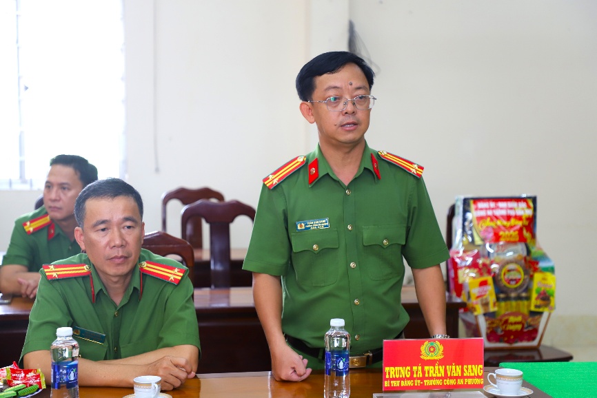 Trung tá Đinh Tùng An, Phó Giám đốc Công an thành phố phát biểu tại buổi thăm, chúc Tết