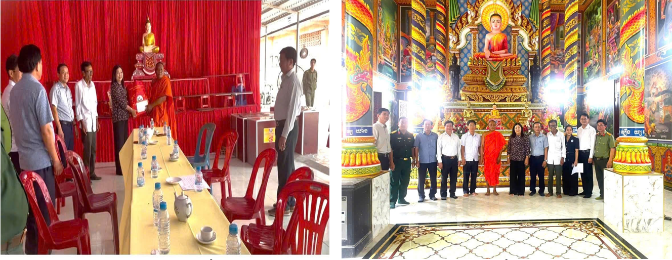 Tại buổi thăm, thay mặt đoàn công tác, đồng chí Lý Rotha đã gửi lời chúc mừng tốt đẹp nhất đến chư tăng và bà con phật tử nhân dịp năm mới của đồng bào Khmer; đồng thời ghi nhận những đóng góp tích cực của nhà chùa trong việc vận động phật tử chấp hành tốt chủ trương của Đảng, chính sách pháp luật của Nhà nước, tích cực tham gia phong trào Toàn dân bảo vệ an ninh Tổ quốc, giữ gìn an ninh trật tự, xây dựng khối đại đoàn kết toàn dân tộc tại địa phương. Nhân dịp này, đoàn công tác đã trao tặng phần quà chúc mừng Tết Chôl Chnăm Thmây đến nhà chùa, thể hiện sự quan tâm của các cấp lãnh đạo đối với đời sống tinh thần của đồng bào dân tộc Khmer. Buổi thăm, chúc mừng diễn ra trong không khí thân tình, ấm áp, góp phần tăng cường mối quan hệ gắn bó giữa chính quyền địa phương, lực lượng Công an với các cơ sở tôn giáo và đồng bào Khmer trên địa bàn./.
