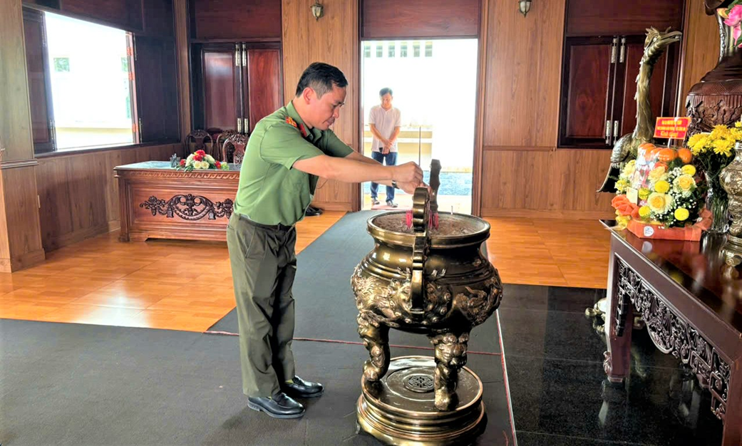 Đại tá Nguyễn Thế Tuấn, Phó Chánh văn phòng Bộ Công an dâng hương tại Khu tưởng niệm