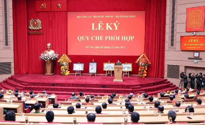 Chiều ngày 06/12/2025, tại Hà Nội đã diễn ra Lễ ký Quy chế phối hợp giữa Bộ Công an, Bộ Quốc phòng và Bộ Ngoại giao.