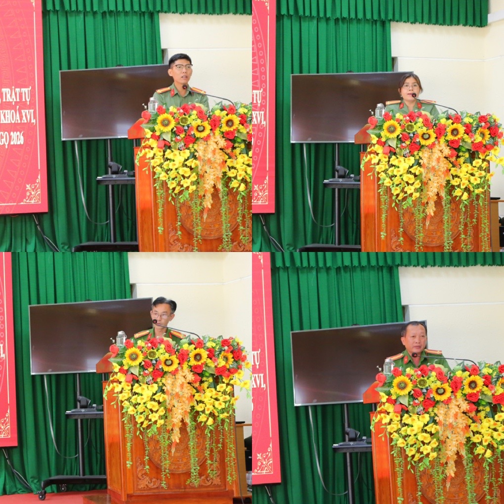 Tại hội nghị, chỉ huy Công an phường đã báo cáo tóm tắt tình hình, kết quả đạt được của đơn vị trong quý I năm 2026 và tổng kết đợt cao điểm tấn công. Theo đó, Công an phường luôn bám sát sự lãnh đạo, chỉ đạo của Đảng ủy, lãnh đạo Công an thành phố và Đảng ủy, Ủy ban nhân dân phường trong công tác bảo đảm ANTT; triển khai thực hiện có hiệu quả các chương trình, kế hoạch công tác đề ra. An ninh quốc gia được giữ vững ổn định, không để xảy ra đột xuất, bất ngờ. Trật tự, an toàn xã hội được bảo đảm.