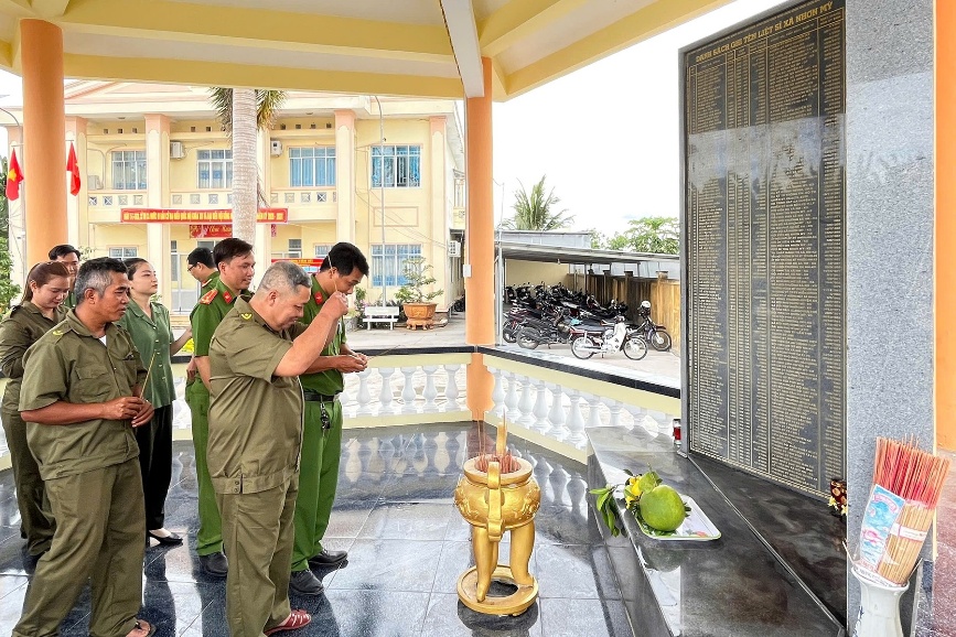 Ban Chỉ huy cùng toàn thể cán bộ, chiến sĩ trang trọng tổ chức lễ viếng và thắp hương tưởng niệm tại Bia liệt sĩ của xã.
