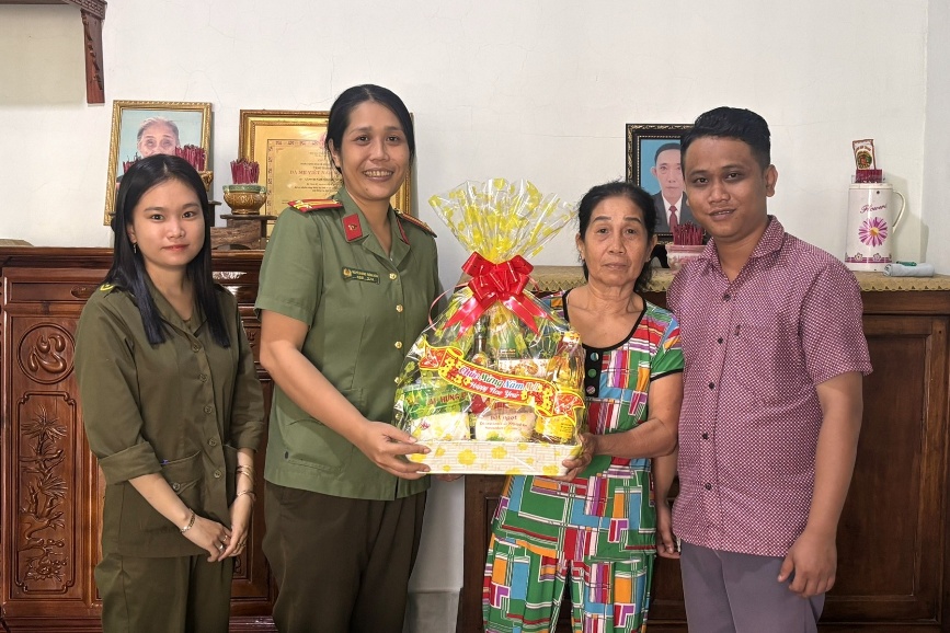 Đến thăm, chúc Tết gia đình thân nhân liệt sĩ Công an nhân dân.