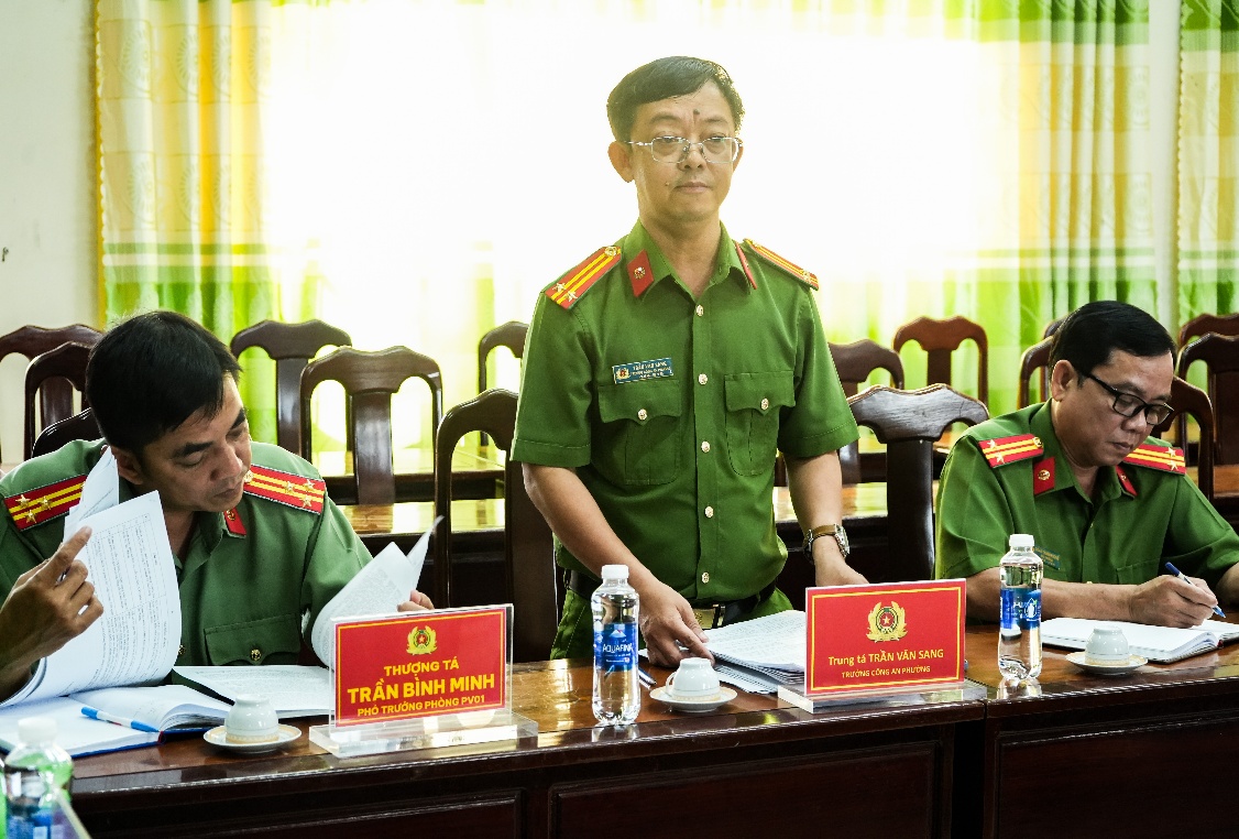 Trung tá Trần Văn Sang, Trưởng Công an phường Thới Long báo cáo kết quả