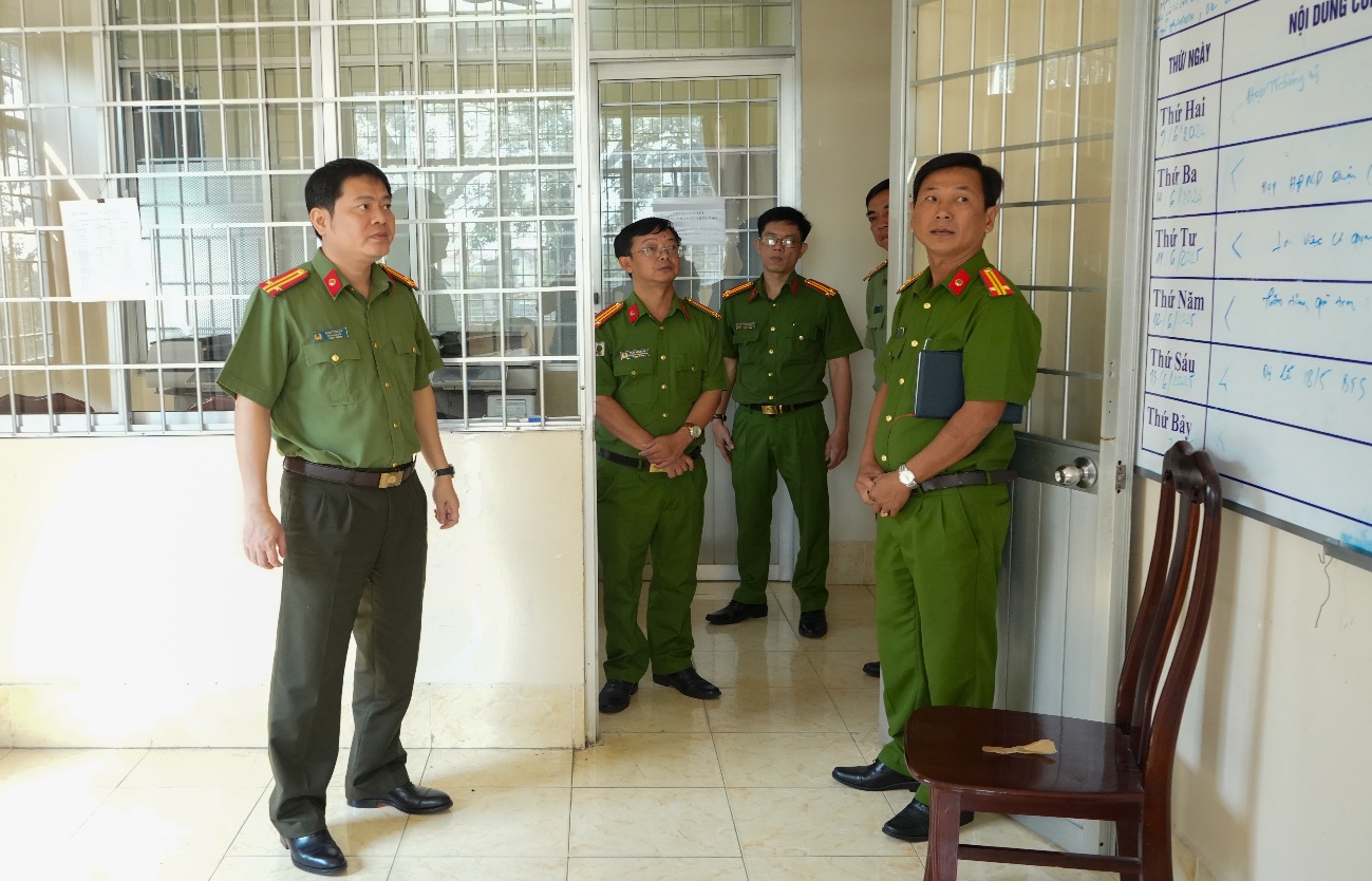 Trung tá Đinh Tùng An, Phó Giám đốc Công an thành phố kiểm tra tại đơn vị
