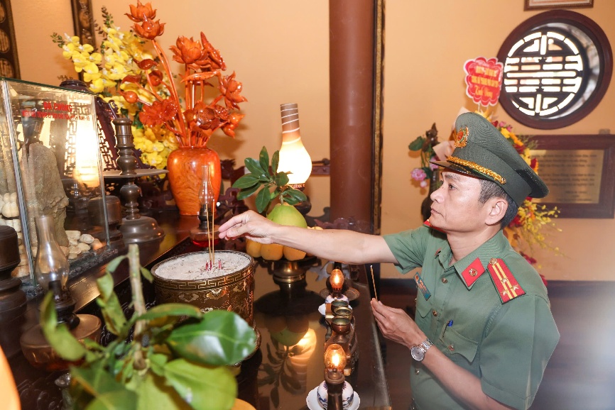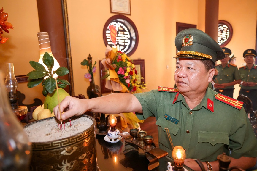 Đại tá Nguyễn Thanh Tràng, Ủy viên Ban Chấp hành Đảng bộ thành phố, Phó Bí thư Đảng ủy, Phó Giám đốc Công an TP Cần Thơ thắp hương tại Nhà Tưởng niệm Chủ tịch Hồ Chí Minh trong khuôn viên Công an thành phố