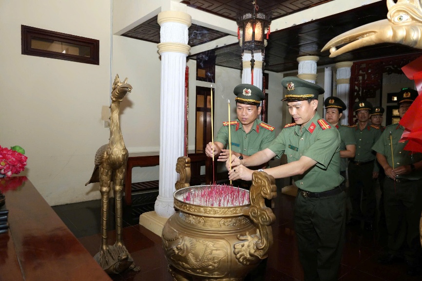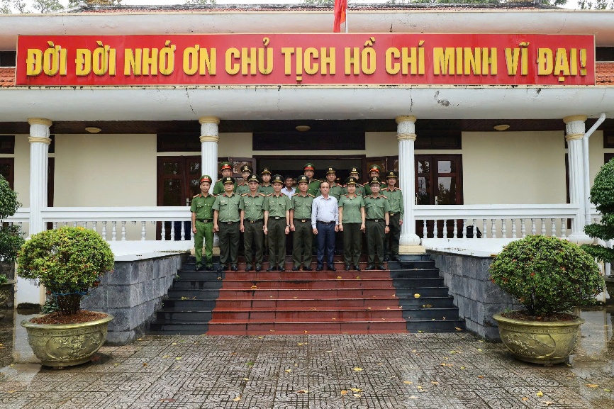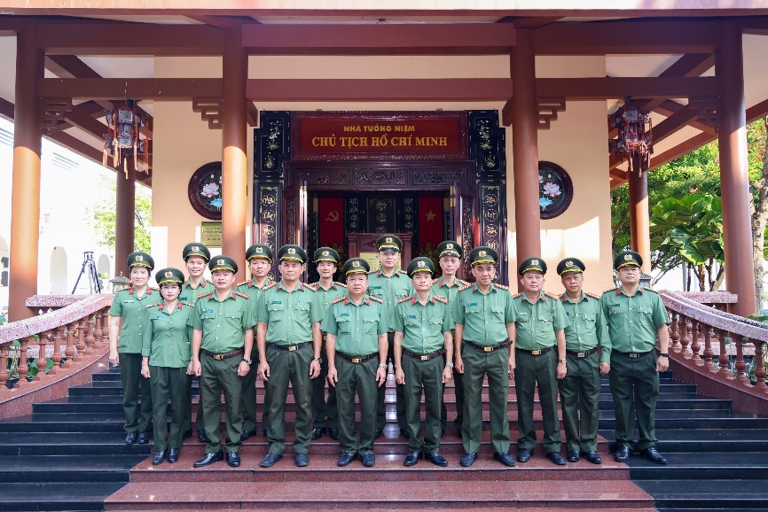 Đoàn dâng hương, dâng hoa và chụp ảnh lưu niệm tại Nhà Tưởng niệm Chủ tịch Hồ Chí Minh trong khuôn viên Công an thành phố Cần Thơ