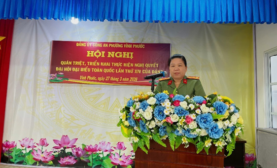 Ngày 27/3/2026, Đảng ủy Công an phường Vĩnh Phước tổ chức Hội nghị triển khai Nghị quyết Đại hội XIV của Đảng và Chương trình hành động của Đảng ủy Công an phường đến toàn thể cán bộ, đảng viên trong đơn vị. Hội nghị có sự tham dự của các đồng chí trong Ban Chấp hành Đảng ủy, chỉ huy đơn vị cùng toàn thể cán bộ, đảng viên.