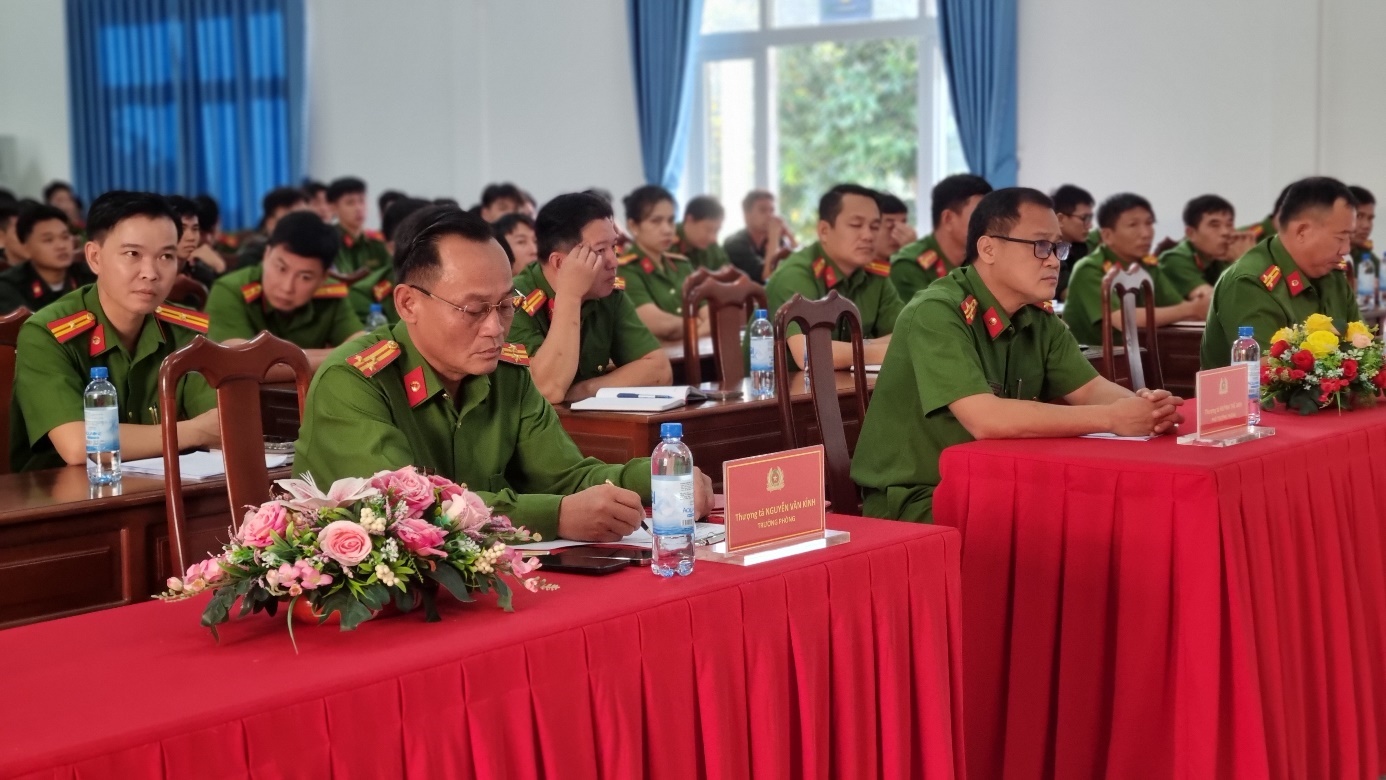 Phát biểu chỉ đạo, đồng chí Thượng tá Nguyễn Văn Kỉnh Trưởng phòng Cảnh sát cơ động yêu cầu Ban Lãnh đạo, Ban Chỉ huy, cán bộ, chiến sĩ Phòng Cảnh sát cơ động: (1) Tổ chức triển khai nghiêm túc các quy định của Đảng, Nhà nước, Bộ Công an về chức năng, nhiệm vụ của lực lượng Cảnh sát cơ động; (2) Xác định rõ vai trò, tầm quan trọng của công tác huấn luyện, bảo đảm thực hiện đồng bộ, hiệu quả, đáp ứng yêu cầu nhiệm vụ trong tình hình mới. Xác định huấn luyện là nhiệm vụ chính trị trọng tâm, kết quả huấn luyện là thước đo bản lĩnh chính trị, trình độ nghiệp vụ, khả năng sẵn sàng chiến đấu của lực lượng; (3) Quá trình huấn luyện phải chấp hành nghiêm quy định về thao trường, bãi tập, quản lý, sử dụng vũ khí, công cụ hỗ trợ; phương pháp huấn luyện phù hợp từng nội dung, từng đối tượng; (4) Cán bộ huấn luyện nêu cao tinh thần trách nhiệm, chủ động, sáng tạo; tổ chức huấn luyện đúng nội dung, chương trình từ cơ bản đến nâng cao, gắn lý luận với thực tiễn công tác, chiến đấu. Thực hiện nghiêm Quy tắc bảo đảm an toàn trong huấn luyện, bảo đảm tuyệt đối an toàn về người, vũ khí, trang thiết bị; (5) Chủ động tham mưu tháo gỡ khó khăn, lựa chọn nội dung huấn luyện thiết thực, có tính ứng dụng cao. Tất cả thực hiện nghiêm khẩu hiệu “Thao trường đổ mồ hôi, chiến trường bớt đổ máu”.