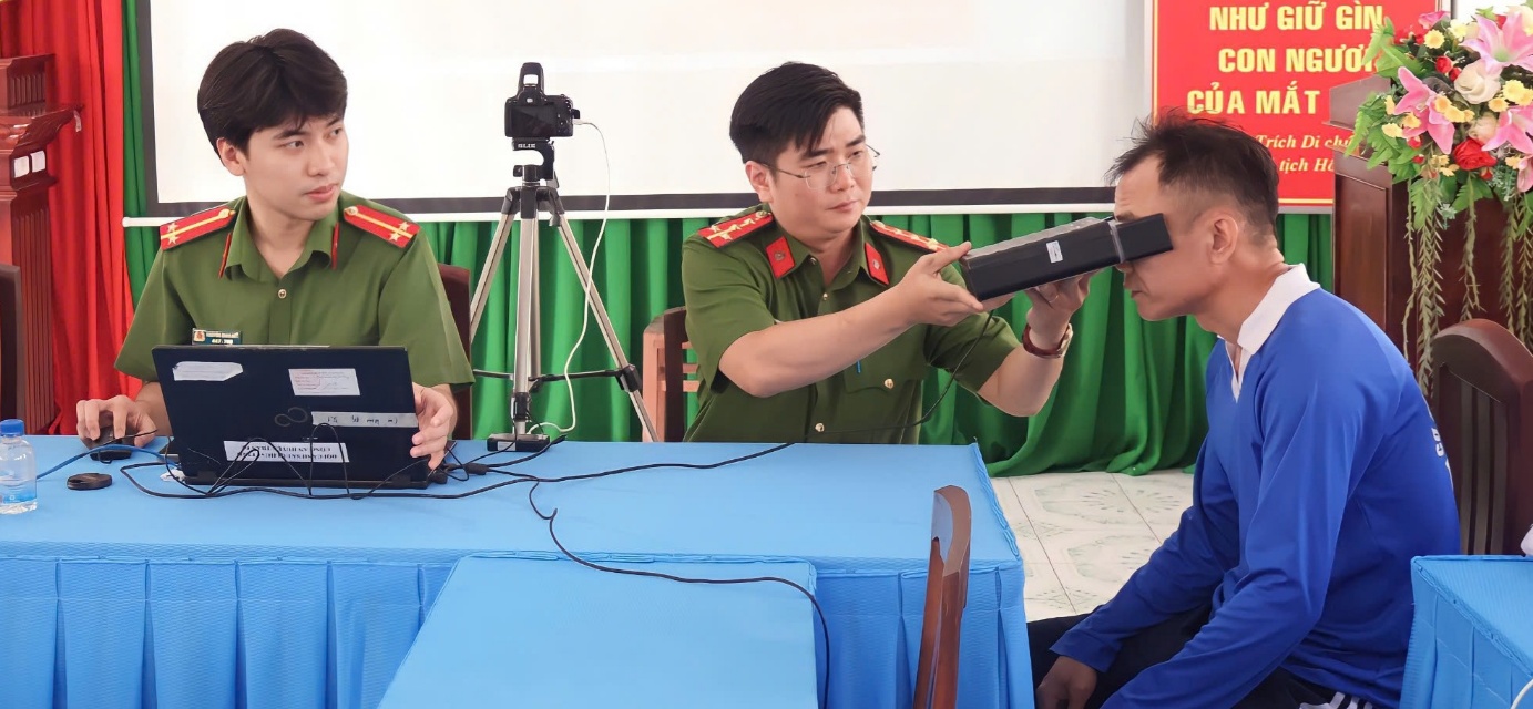 Cán bộ thu nhận mống mắt của người cai nghiện