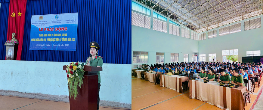 Hưởng ứng Tháng hành động vì bình đẳng giới năm 2025 do Công an thành phố Cần Thơ phát động. Chiều ngày 11/12/2025 Phòng Kỹ thuật nghiệp vụ và ngoại tuyến phối hợp cùng Hội Liên hiệp Phụ nữ phường Long Tuyền tổ chức tuyên truyền pháp luật với chủ đề “Bình đẳng giới và an toàn cho phụ nữ, trẻ em gái trong kỷ nguyên số” tại Trường Trung học cơ sở Long Tuyền, phường Long Tuyền, thành phố Cần Thơ.