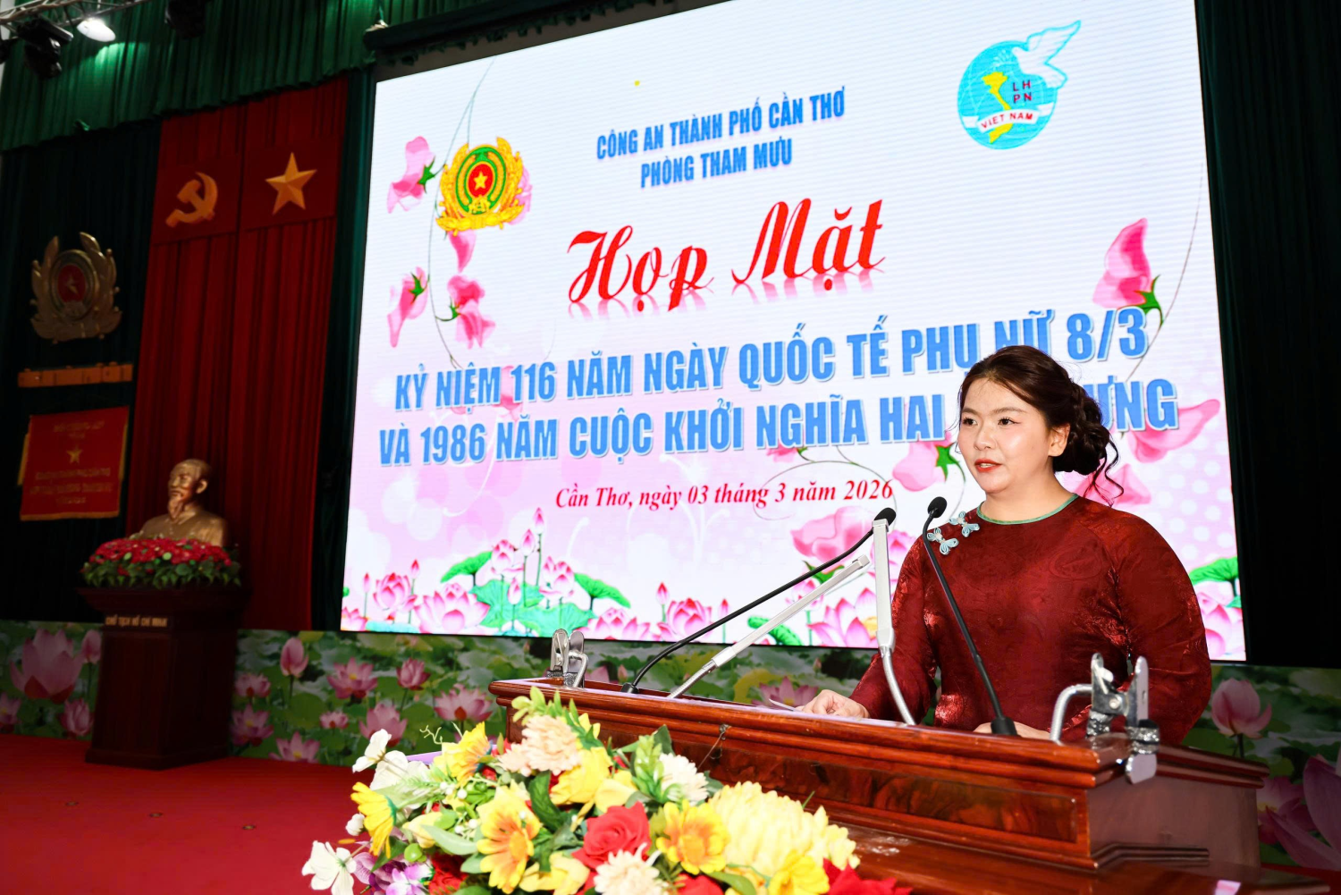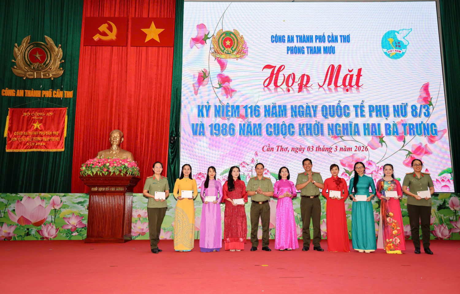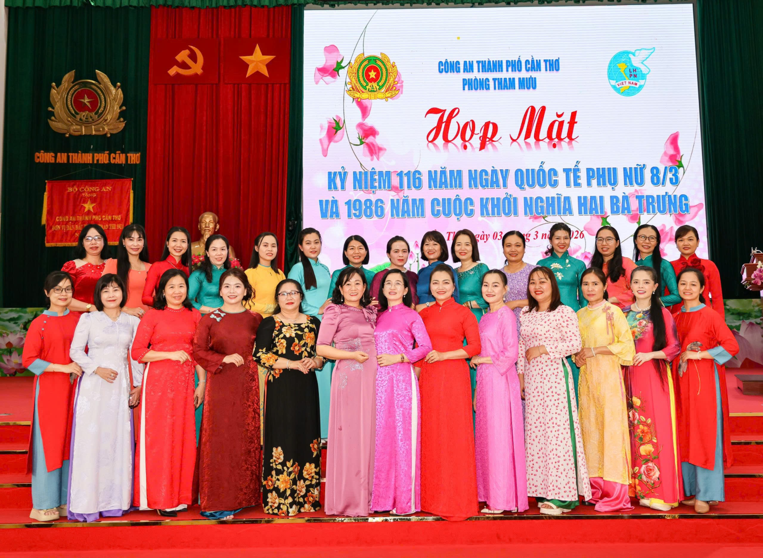Thiết thực chào mừng 116 năm Ngày Quốc tế Phụ nữ (08/3/1910 - 08/3/2026) và 1986 năm Khởi nghĩa Hai Bà Trưng, Phòng Tham mưu Công an thành phố Cần Thơ tổ chức buổi họp mặt truyền thống, ôn lại chặng đường vẻ vang của phụ nữ Việt Nam và tôn vinh những đóng góp quan trọng của nữ cán bộ, chiến sĩ trong lực lượng Công an nhân dân.