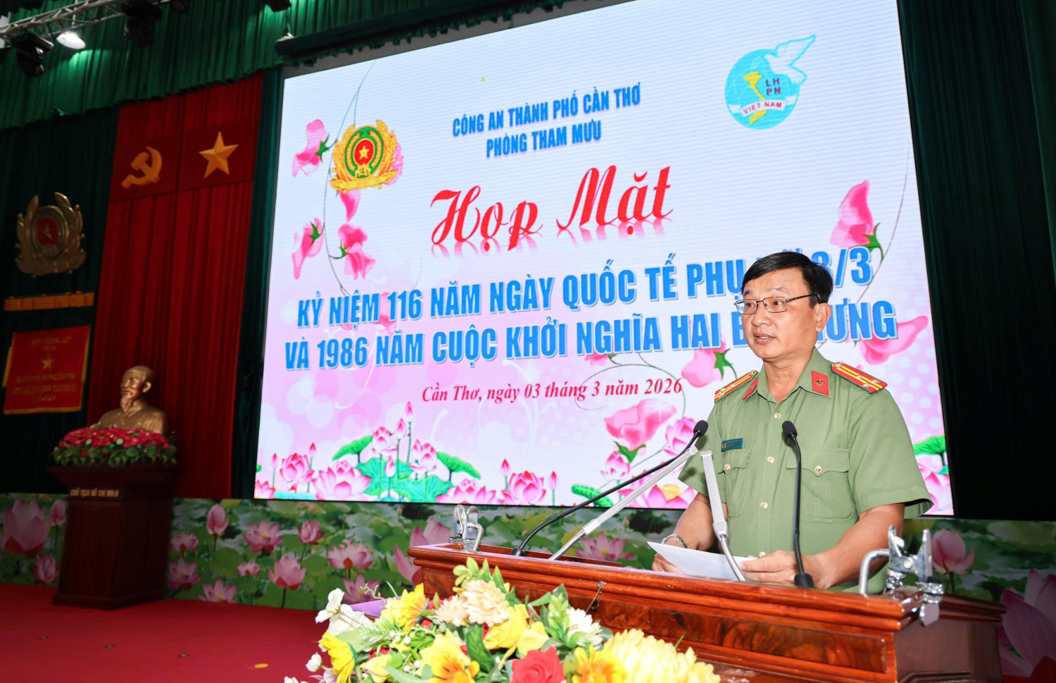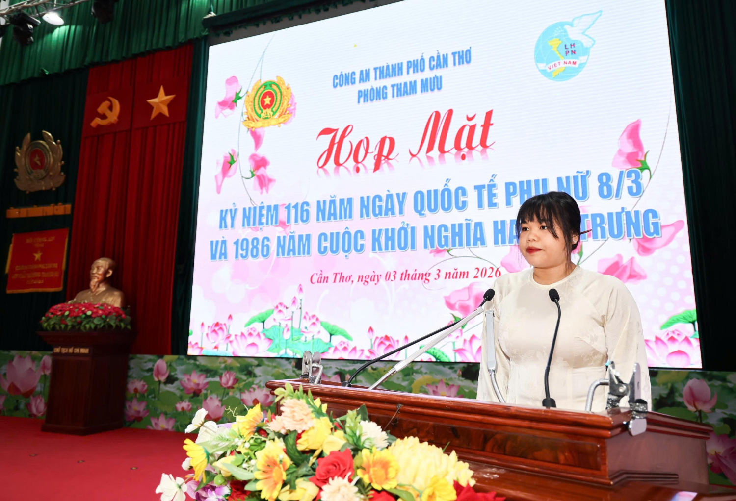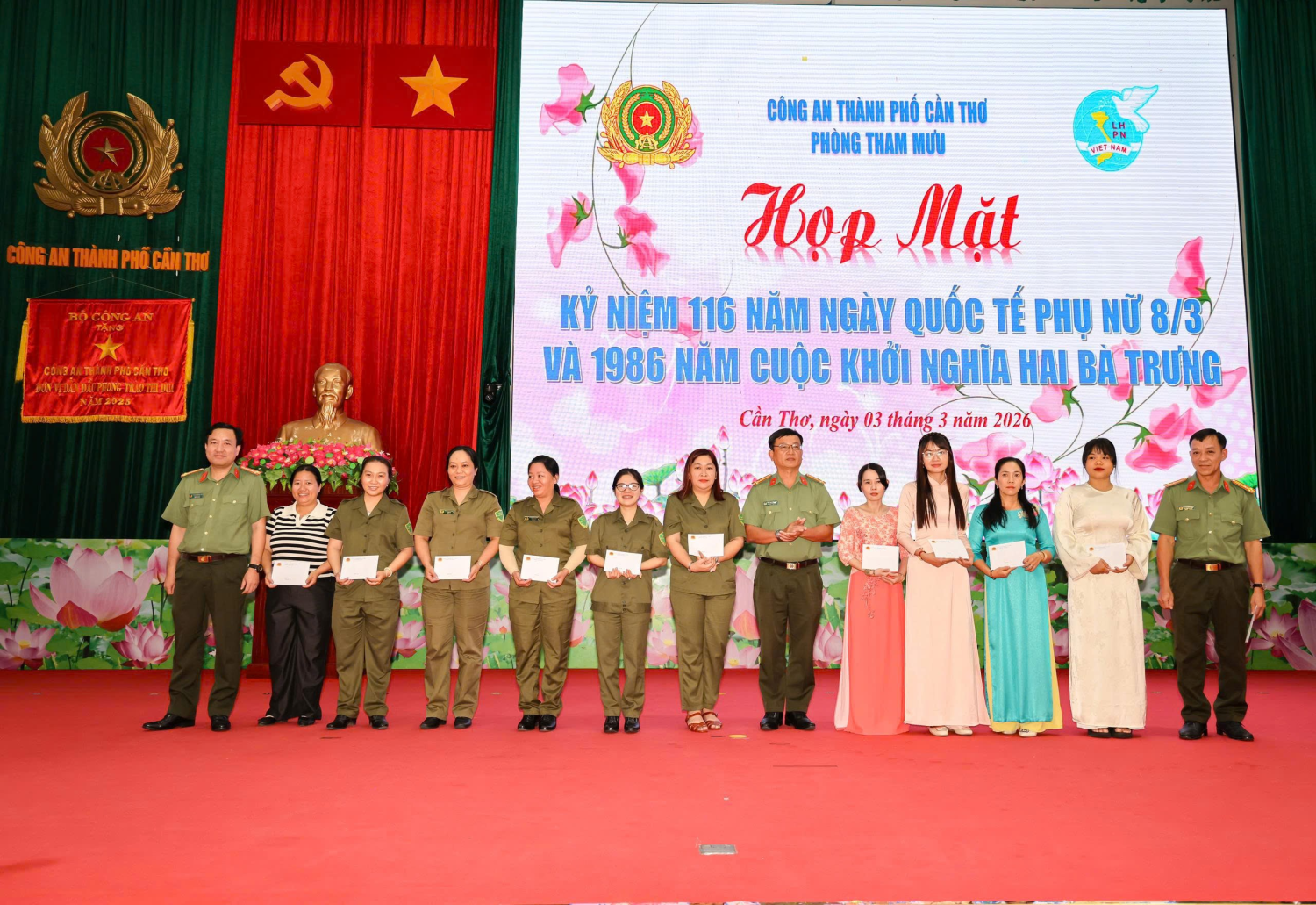 Thiết thực chào mừng 116 năm Ngày Quốc tế Phụ nữ (08/3/1910 - 08/3/2026) và 1986 năm Khởi nghĩa Hai Bà Trưng, Phòng Tham mưu Công an thành phố Cần Thơ tổ chức buổi họp mặt truyền thống, ôn lại chặng đường vẻ vang của phụ nữ Việt Nam và tôn vinh những đóng góp quan trọng của nữ cán bộ, chiến sĩ trong lực lượng Công an nhân dân.