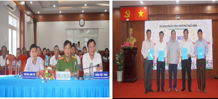 Tại Hội nghị, đại diện lãnh đạo phòng Văn hóa - Xã hội phường đã công bố Quyết định thành lập Ban đại diện Hội đồng quản trị Ngân hàng chính sách xã hội Ngã Năm. Theo đó, Ban đại diện có nhiệm vụ tham mưu, giúp Ủy ban nhân dân phường thực hiện tốt công tác quản lý, giám sát hoạt động tín dụng chính sách trên địa bàn; phối hợp với các tổ chức chính trị - xã hội nhận ủy thác nhằm bảo đảm nguồn vốn được triển khai đúng đối tượng, đúng mục đích, phát huy hiệu quả, góp phần giảm nghèo bền vững, giải quyết việc làm và đảm bảo an sinh xã hội. Tiếp tục chương trình Hội nghị, đại diệnPhòng giao dịch Ngân hàng chính sách xã hội Ngã Năm đã thông qua nội dung Chương trình phối hợp, trong đó nhấn mạnh những mục đích, yêu cầu và 04 nội dung phối hợp bao gồm: phối hợp trong công tác tham mưu; phối hợp xác định và quản lý đối tượng vay vốn; phối hợp phòng ngừa, xử lý rủi ro tín dụng; phối hợp tuyên truyền, vận động nhằm đảm bảo an ninh, an toàn hoạt động tín dụng chính sách trên địa bàn trong thời gian tới; trên cơ sở thống nhất các nội dung trong Chương trình phối hợp đại diện Phòng giao dịch Ngân hàng chính sách xã hội Ngã Năm và Công an phường Ngã Năm đã tiến hành ký kết Chương trình phối hợp trong công tác đảm bảo an ninh, an toàn hoạt động tín dụng chính sách trên địa bàn.