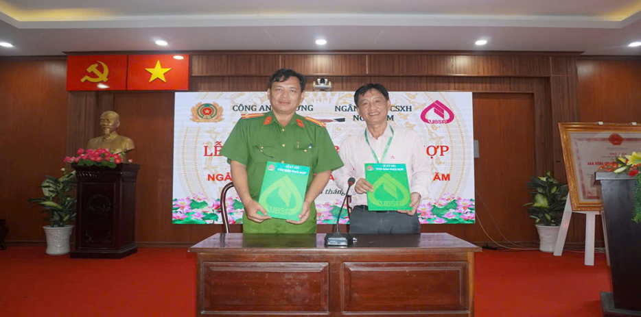 Ảnh: Công an phường và Phòng giao dịch Ngân hàng chính sách xã hội Ngã Năm ký kết quy chế phối hợp